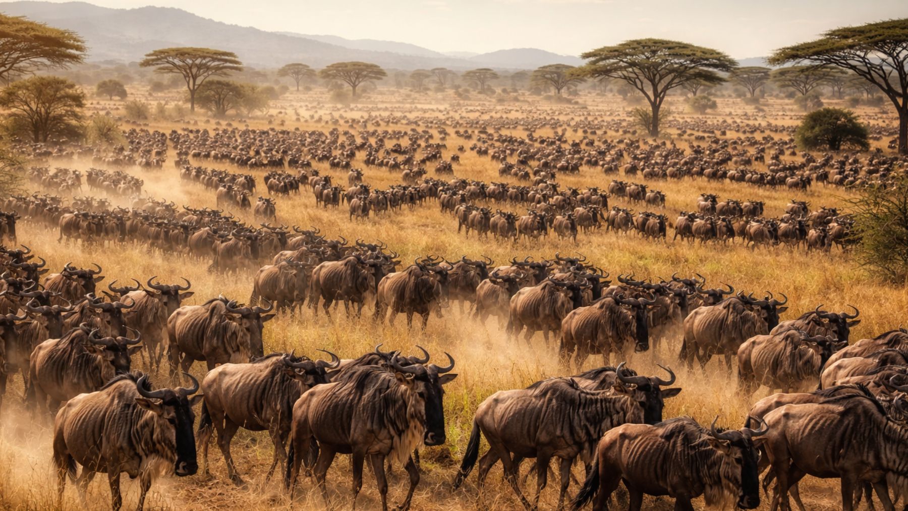 La Gran Migración del Serengueti podría estar atravesando una crisis sin precedentes. Durante décadas, la presencia masiva de ñus garantizó el equilibrio ecológico de esta llanura africana.