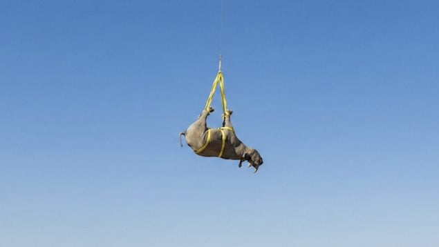 Así se cuelga a los rinocerontes de los pies para salvarlos de los cazadores