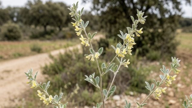 Esta planta, cuyo nombre científico es Astragalus gines-lopezii, pertenece a la familia de las leguminosas y presenta un aspecto discreto. Sus tallos alcanzan entre 20 y 60 centímetros y sostienen hojas compuestas, cubiertas por una fina pelusa. En primavera, entre marzo y mayo, desarrolla pequeñas flores amarillas agrupadas en racimos, el rasgo más visible para quien sabe dónde mirar.