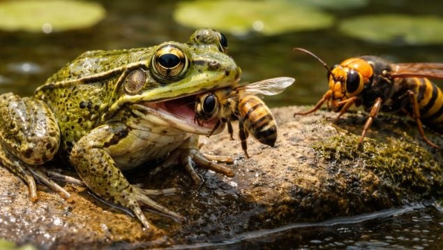 Los zoólogos no dan crédito: las ranas de un estanque comen avispones y resisten sus picaduras como si nada