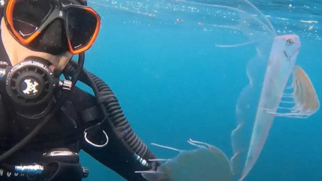 Los zoólogos no se lo creen: un buceador avista un insólito pez abisal a sólo 4 metros de la superficie del oceáno