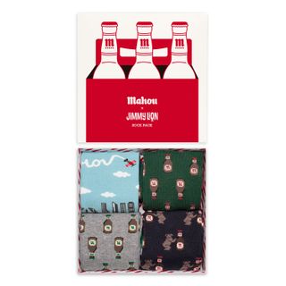 El pack «Jurassic World» es perfecto para los fans de la saga. Los calcetines son de media caña, y tienen como motivo diferentes dinosaurios. Están confeccionados con tejido de muy buena calidad. ¿Y el pack «Mahou»? Un regalo de lo más original para los amantes de la cerveza.