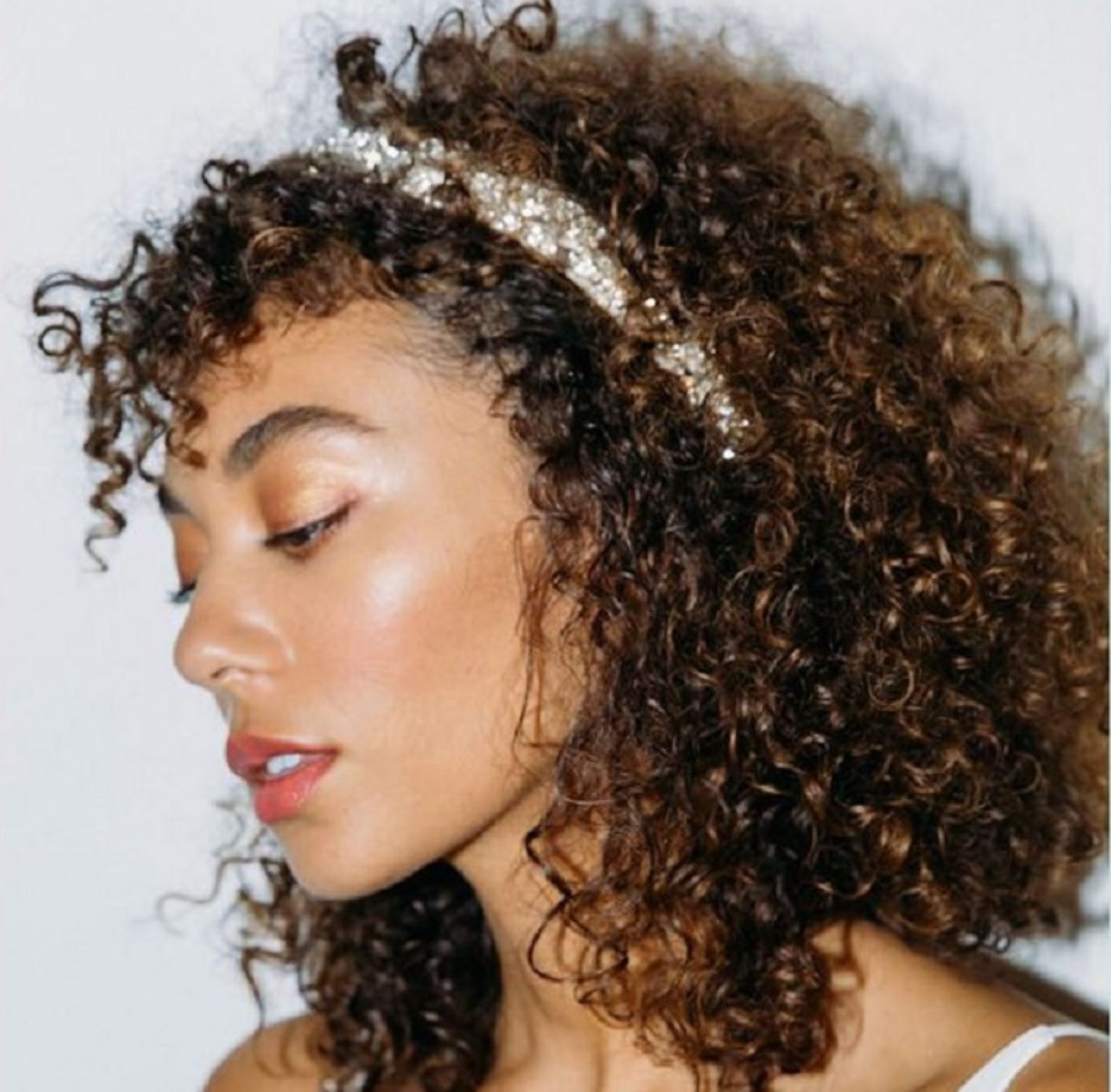 El volumen, los rizos, los cristales: todo este look es algo fácil de conseguir y que te va a permitir brillar para la noche de Nochevieja. Con un poco de pegamento para pestañas como respaldo, puedes aplicar pegatinas de perlas individuales en la coronilla o usar una diadema con tachuelas si prefieres algo más simple.