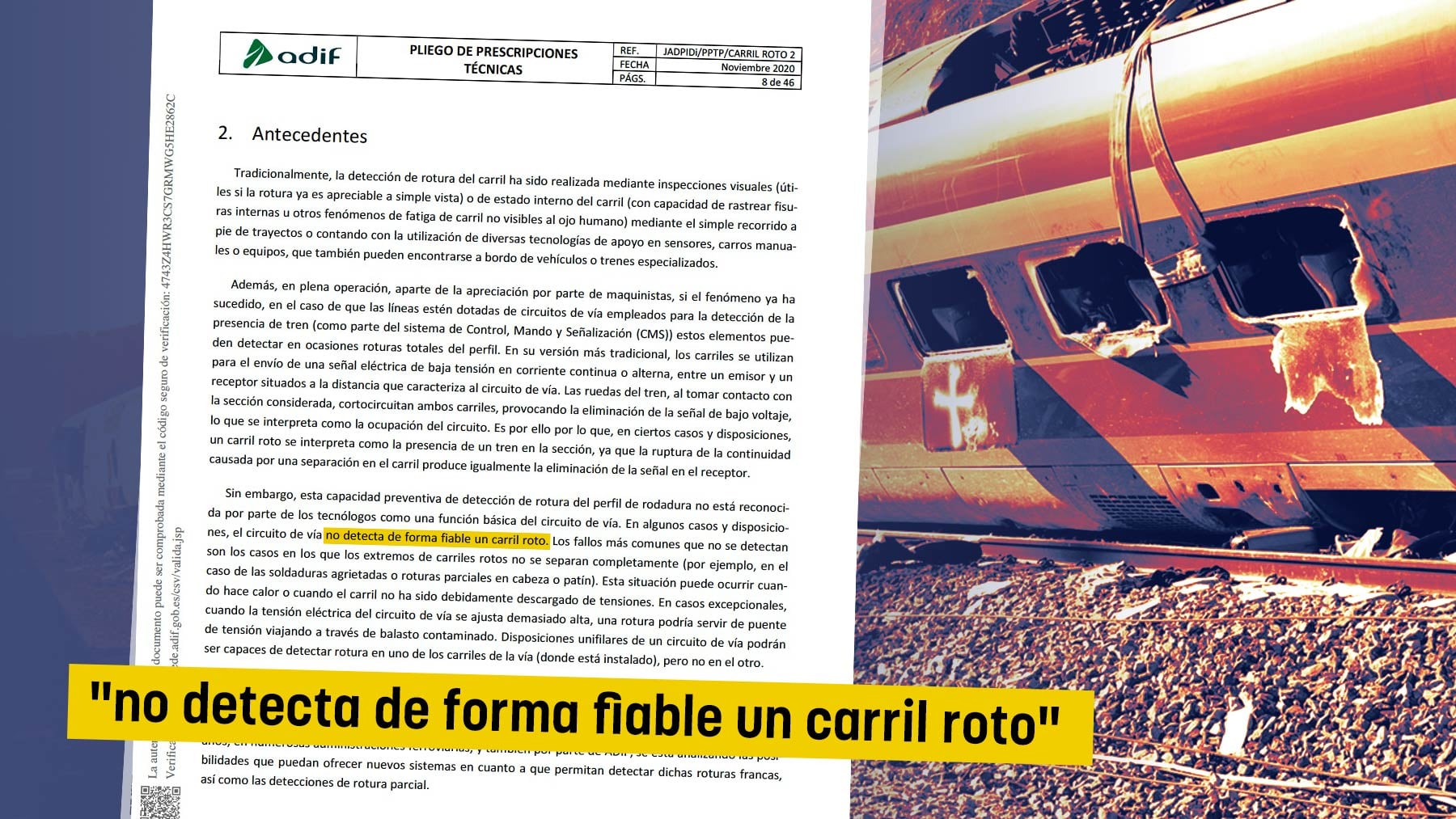 Transportes sabía antes de la tragedia de Adamuz que el sistema para detectar vías rotas "no era fiable"