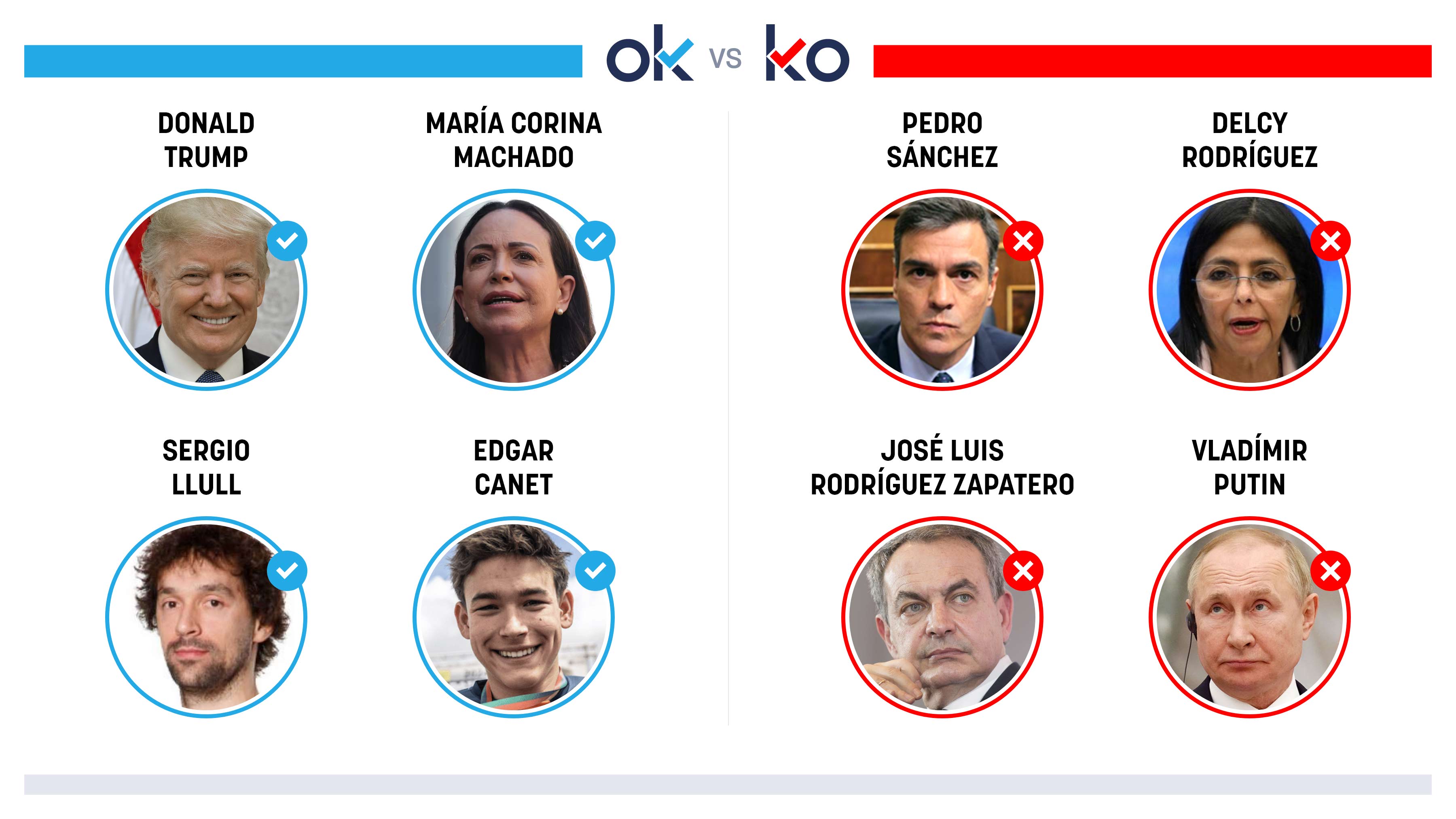 OK: Donald TrumpPorque la captura del narcodictador Maduro abre, por fin, una puerta de esperanza a la democracia en Venezuela.OK: María Corina MachadoPor su llamada a la transición: «Venezolanos,...