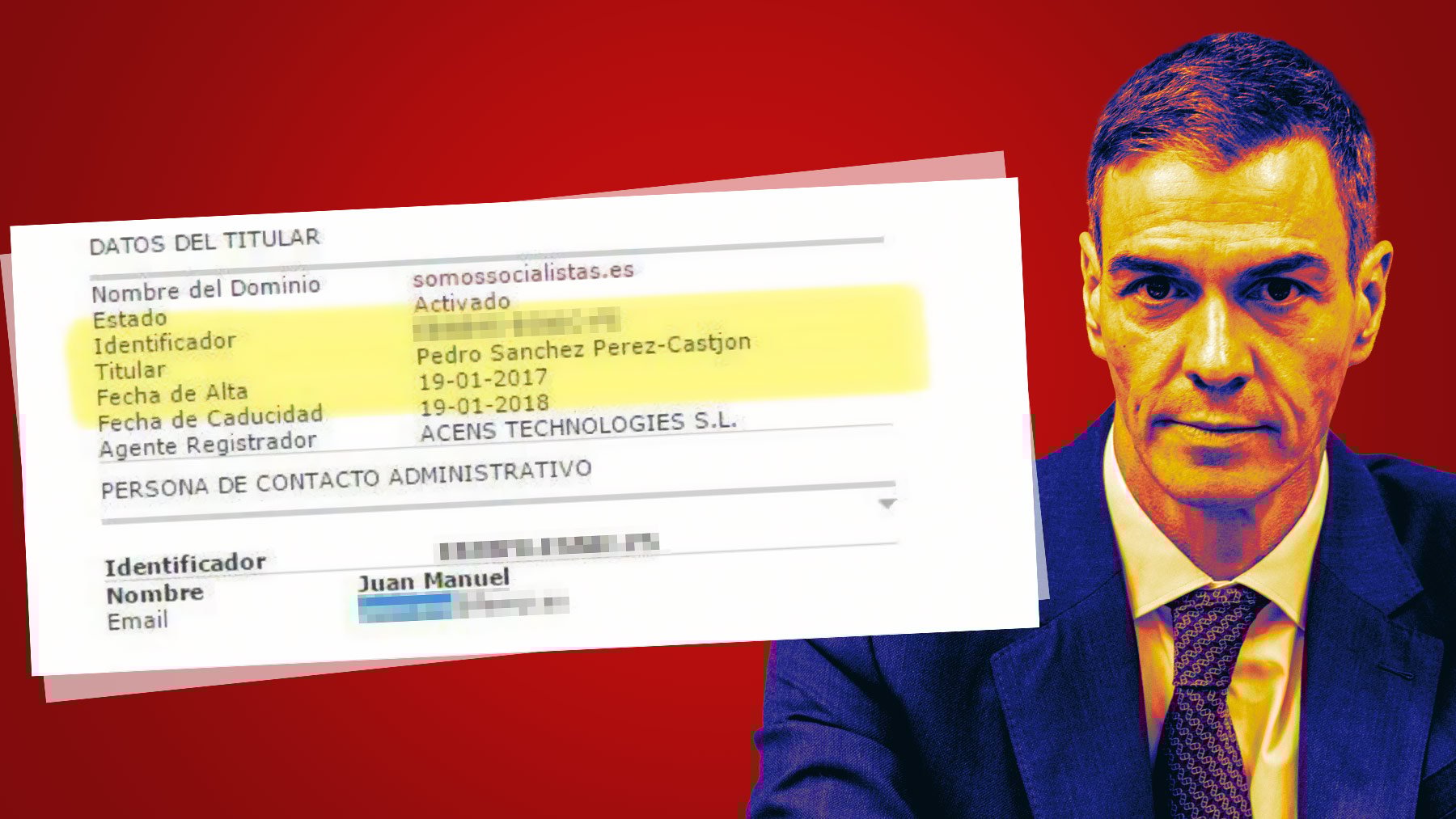 La prueba de que Sánchez tenía a su nombre la web bajo sospecha de recibir dinero de las saunas