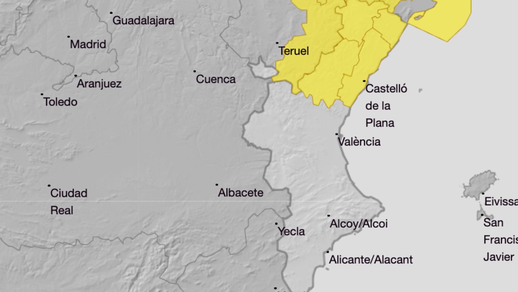 El mapa del tiempo en la Comunidad Valenciana. (Foto: AEMET)