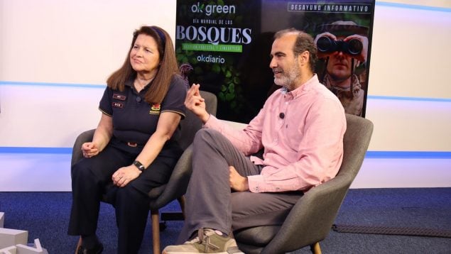 Marta Jerez, jefa de servicio de Incendios Forestales de la Comunidad de Madrid, y de Javier de los Nietos Miguel, pastor y biólogo, en el plató de OKDIARIO