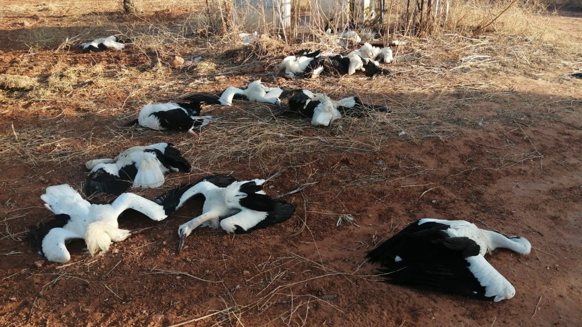 La terrible imagen de las 19 cigüeñas blancas encontradas muertas al pie de una instalación eléctrica
