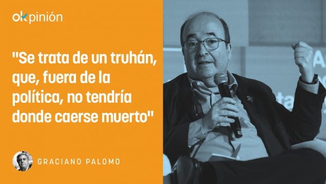 Cuando se echa un vistazo a sus peroratas de socialista avaro, colindante entre Pablo Iglesias (el bueno) y Lluis Companys, y se comparan con sus hechos, es fácil colegir que se trata de un truhán, más que abreva a dos carrillos de la política y que fuera de dicha actividad, no tendría donde caerse muerto.