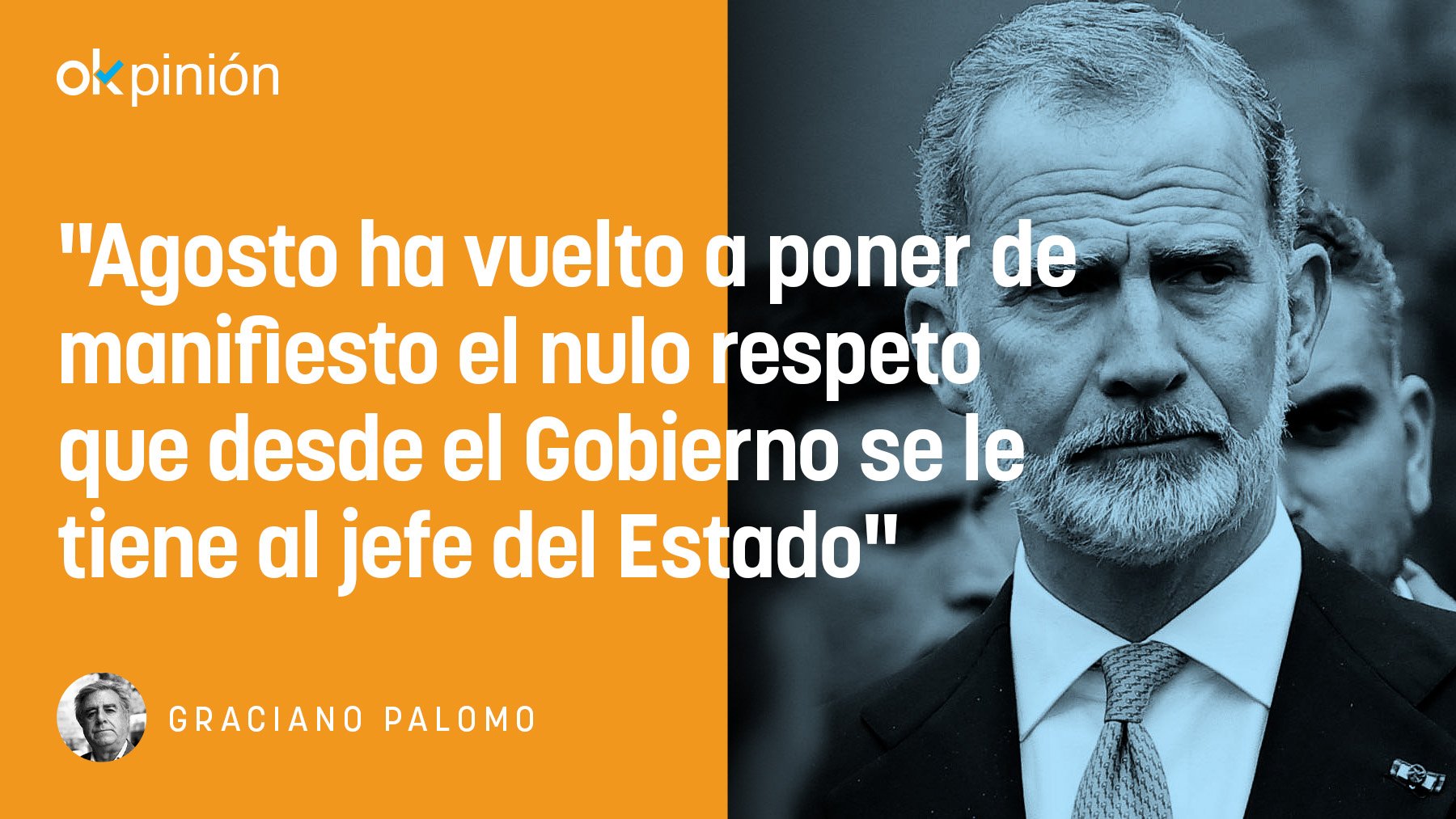 El mes de agosto ha vuelto a poner de manifiesto el nulo respeto que desde el Gobierno se le tiene al jefe del Estado, magistratura encarnada con solvencia por el Rey Felipe VI con una profesionalidad y un sentido a prueba de provocaciones.