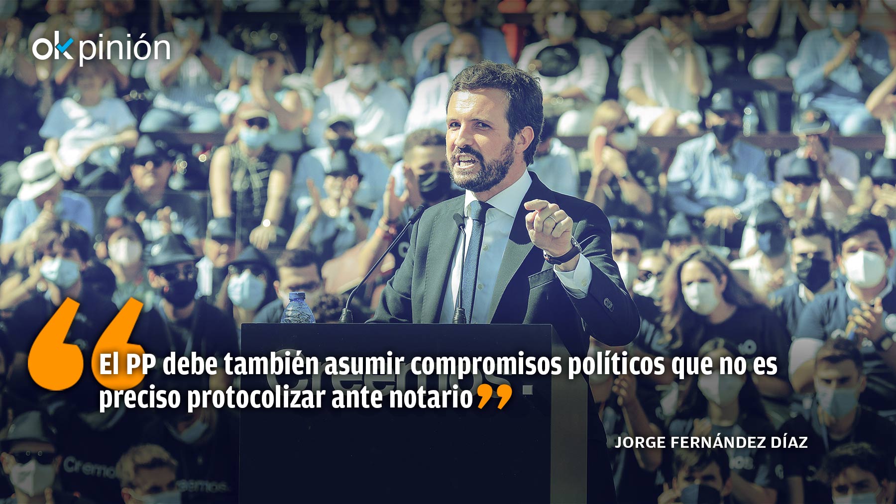 Tras la debacle electoral de las generales de abril de 2019, en los comicios territoriales del mes siguiente, los pactos postelectorales del centroderecha que consiguieron el gobierno para los candidatos del PP en plazas emblemáticas como Madrid —Cibeles y Sol— y Castilla y León, aderezadas por la previa victoria en Andalucía tras casi 40 años de socialismo y la renovada mayoría en Galicia, permitieron a Casado y a su equipo el oxígeno necesario para presentarse sin problemas a las elecciones repetidas de noviembre. Ahora —como ya sucediera en los precedentes comicios de 1995 y 2011, que presagiaron el cambio político materializado a continuación, sucediendo Aznar a González y Rajoy a Zapatero, respectivamente— será Casado quien hago lo propio respecto a Sánchez y el sanchismo.