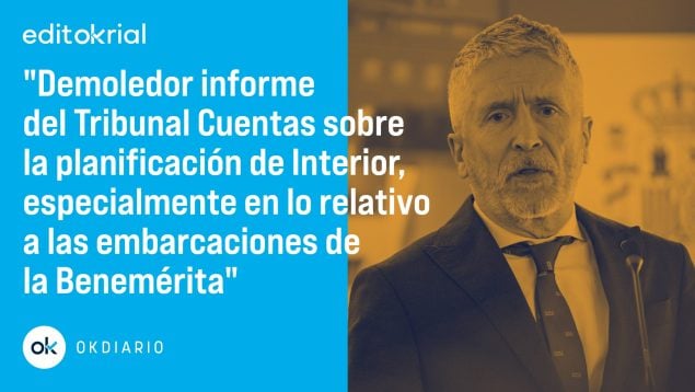 Lo que hace el Tribunal de Cuentas es valorar la planificación e inversión del Ministerio de Interior. Pues bien, el documento es un bofetón en toda regla al departamento de Marlaska, porque lo que viene a poner de manifiesto es que el lamentable estado de las embarcaciones obliga a un gasto desmedido por problemas mecánicos, principalmente. Eso las que tienen arreglo, porque la mitad están para el derribo.