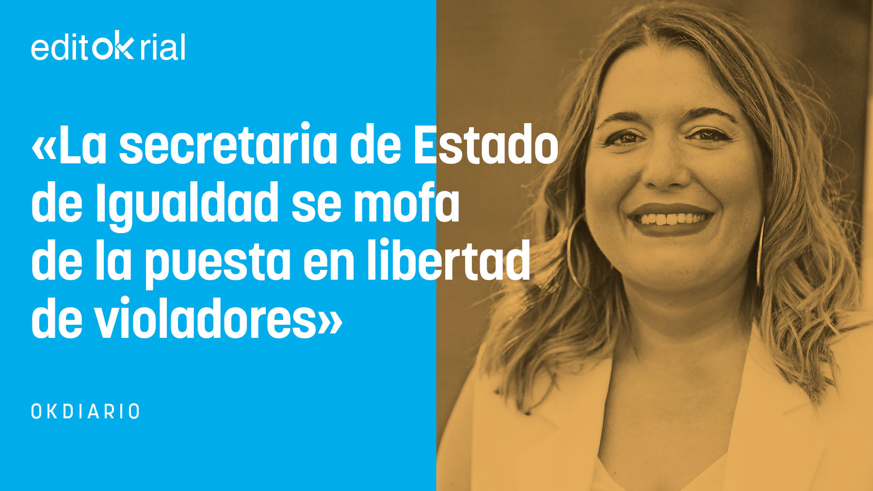 Resulta sencillamente obsceno que la secretaria de Estado de Igualdad, Ángela Rodríguez Pam, se mofe a carcajada limpia de la salida de prisión de algunos agresores sexuales en aplicación del bodrio de la ley del sólo sí es sí. Se conoce que el hecho de que 139 agresores sexuales hayan visto reducidas sus condenas le provoca risa. El vídeo que ofrece OKDIARIO es la prueba del nueve de la falta de escrúpulos de la alto cargo de Igualdad, incapaz de mostrar la más mínima sensibilidad hacia el temor y el dolor de centenares de mujeres que han visto como sus agresores han visto mejorado su horizonte penal. ¿De qué te ríes, Pam? A la vista del tono jocoso con el que se ha referido al asunto en un reciente foro organizado por Podemos, Feminismo para todo el mundo. ¿Qué está pasando con la violencia machista?, cualquiera diría que a la secretaria de Estado de Igualdad le hace mucha gracia la situación derivada tras la entrada en vigor de ese esperpento legislativo perpetrado en su departamento.