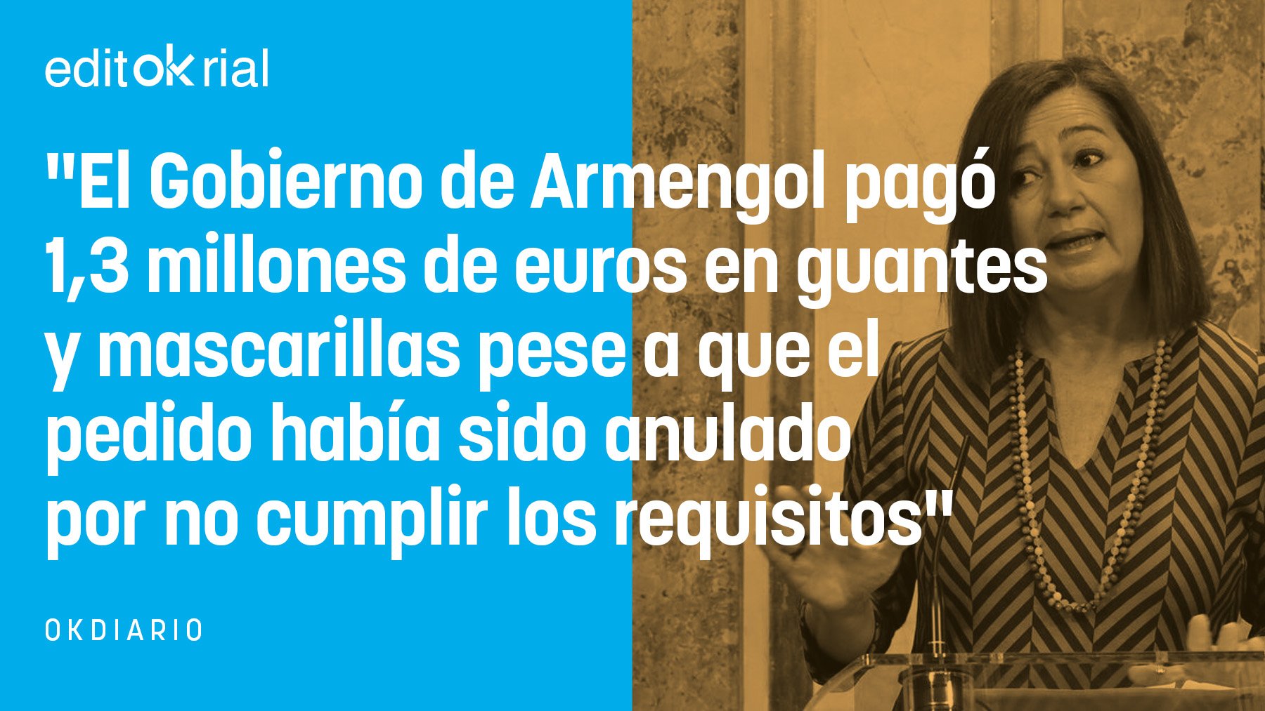 Lo del anterior Gobierno socialcomunista de Baleares es la apoteosis de la negligencia -vamos a dejarlo ahí, por ahora-, porque bajo el mandato de Francina Armengol se pagaron 1,3 millones de euros por cuatro millones de unidades de guantes y mascarillas que no fueron suministrados. Del montante encargado a la empresa Tyrval Import Export entre el 26 de marzo y el 22 de abril de 2020 por un total de 6,4 millones de euros para el suministro de material sanitario Covid, entre mascarillas quirúrgicas, trajes de protección, mascarillas FFP2, guantes o termómetros, una parte sustancial no cumplía con los requisitos pactados, por lo que el pedido fue anulado. Sin embargo, pese a que se anularon los guantes de un primer pedido por un importe de 322.800 euros (4 millones de unidades) y las FFP3 del tercer pedido por un importe de 980.000 euros (100.000 unidades), «a pesar de estas variaciones, el precio final de todo el suministro no varió», los citados 6.438.100 euros.