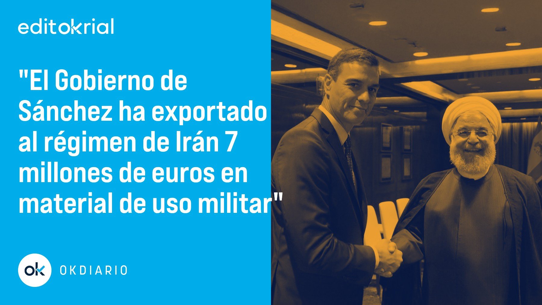Ha dicho el presidente del Gobierno que tan malo es Donald Trump por bombardear Irán como el régimen «odioso» de los ayatolás, pero ha permanecido de brazos cruzados desde que llegó a la Moncloa ante el «odioso» régimen iraní. Es más, España ha realizado con la autorización del Gobierno de Pedro Sánchez exportaciones de material de «doble uso» -militar, para entendernos- a Irán por alrededor de 7 millones de euros desde que el líder del PSOE llegara al Gobierno a mediados de 2018. Se conoce que esa es la manera que tiene el Ejecutivo socialcomunista de apurar las vías diplomáticas para que Irán respete los derechos humanos. Los datos vienen recogidos en los informes publicados por la Secretaría de Estado de Comercio y demuestran que mientras el Gobierno ha intensificado su boicot a Israel, no ha promovido bloqueo ni castigo comercial alguno contra el régimen del extinto Alí Jamenei.