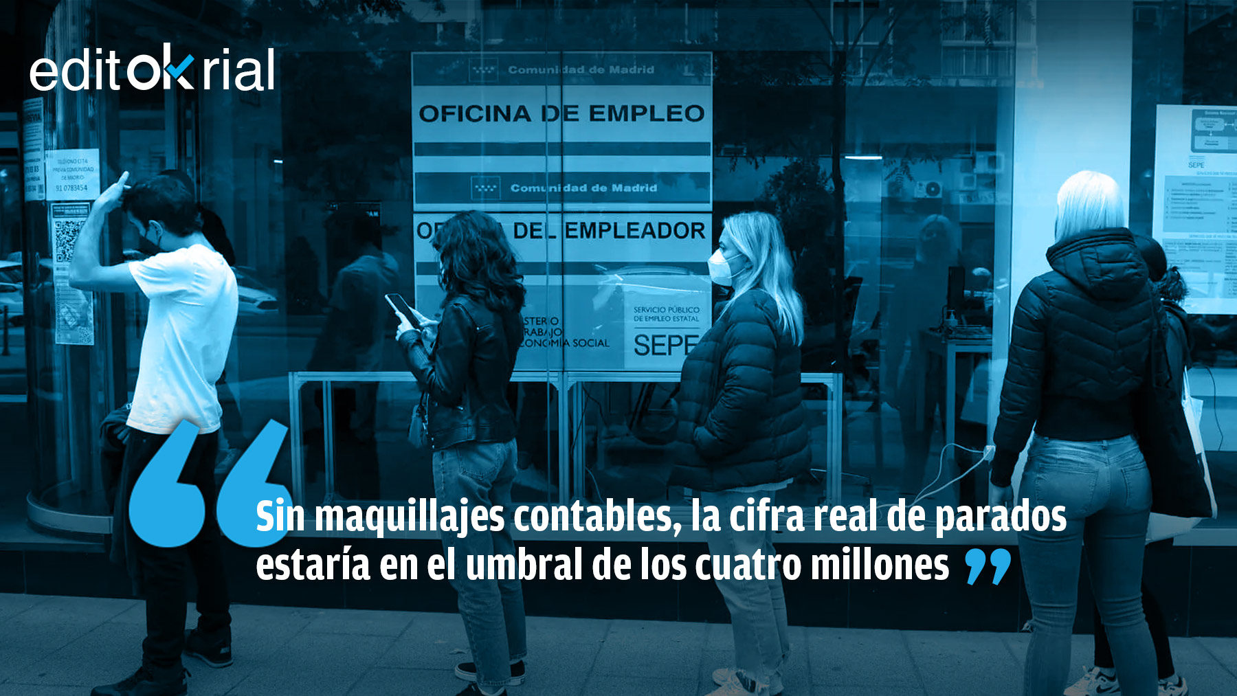 El Gobierno socialcomunista se jacta de que sólo hay 3.182.687 parados registrados en las oficinas del SEPE, después de que en noviembre la cifra de desempleados se haya reducido en 74.381 personas, pero oculta que esa estadística excluye innumerables categorías en las que se encuentra gente que no trabaja. En total, 755. 817 personas en edad laboral que no computan como paradas, pero que no engordan la cifra de desempleados. Bucear por las estadísticas del Ministerio de Trabajo es una aventura no exenta de sorpresas, porque nos encontraremos con epígrafes como «Otros no ocupados» (229.583), «Con disposición limitada» (294.223), «En Ertes» (125.632) y «Autónomos en cese de actividad» (106.180). Todos ellos están sin trabajar, pero no engloban las estadísticas de parados. Y es que si sumamos esas 755.817 personas que están para el Gobierno en una especie de limbo al número oficial de parados registrados, la cifra real de desempleados asciende a 3.938.504.