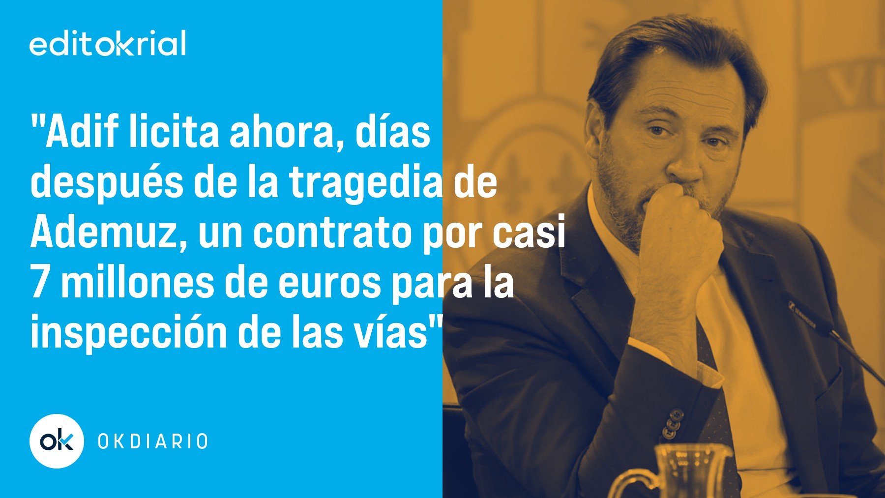 Si todo ha funcionado bien y nada hay de lo que el ministro Óscar Puente pueda arrepentirse, que el Gobierno de Pedro Sánchez haya destinado 6,8 millones a mejorar el sistema de inspección de las vías de tren 19 días después de la tragedia de Adamuz (Córdoba), que costó la vida a 46 personas, es pura coincidencia. O sea, que no hay que ser mal pensado y establecer sectarias relaciones causas-efecto.