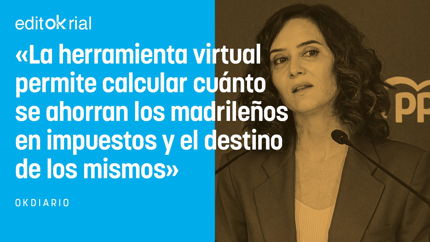 No se trata de dejar a nadie en evidencia y sí de demostrar que cuando la izquierda asegura que Ayuso sólo beneficia a los ricos, falta vilmente a la verdad. La herramienta virtual -sin trampa ni cartón- permite calcular el ahorro en el impuesto de Sucesiones y, además, saber el destino de cada euro recaudado en la Comunidad de Madrid. Basta con rellenar un cuestionario donde se deben indicar los ingresos brutos anuales, si proceden de una pensión pública, la edad, el número de hijos y el tipo de declaración, para saber cuánto pagarían los madrileños sin las rebajas de impuestos que ha ido implementando el Ejecutivo a lo largo de la última legislatura con Ayuso al frente y el ahorro fiscal que se obtiene por dichas rebajas. A la izquierda, esta herramienta no le va a hacer ninguna gracia, porque se ha dedicado a propagar la especie, falsa de toda falsedad, de que la rebaja de impuestos de Ayuso sólo llega a los ricos.