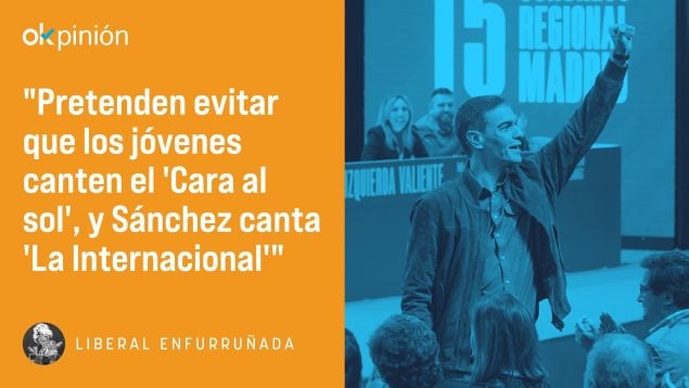 Cantando ‘La Internacional’, Sánchez quiere prohibir el ‘Cara al Sol’
