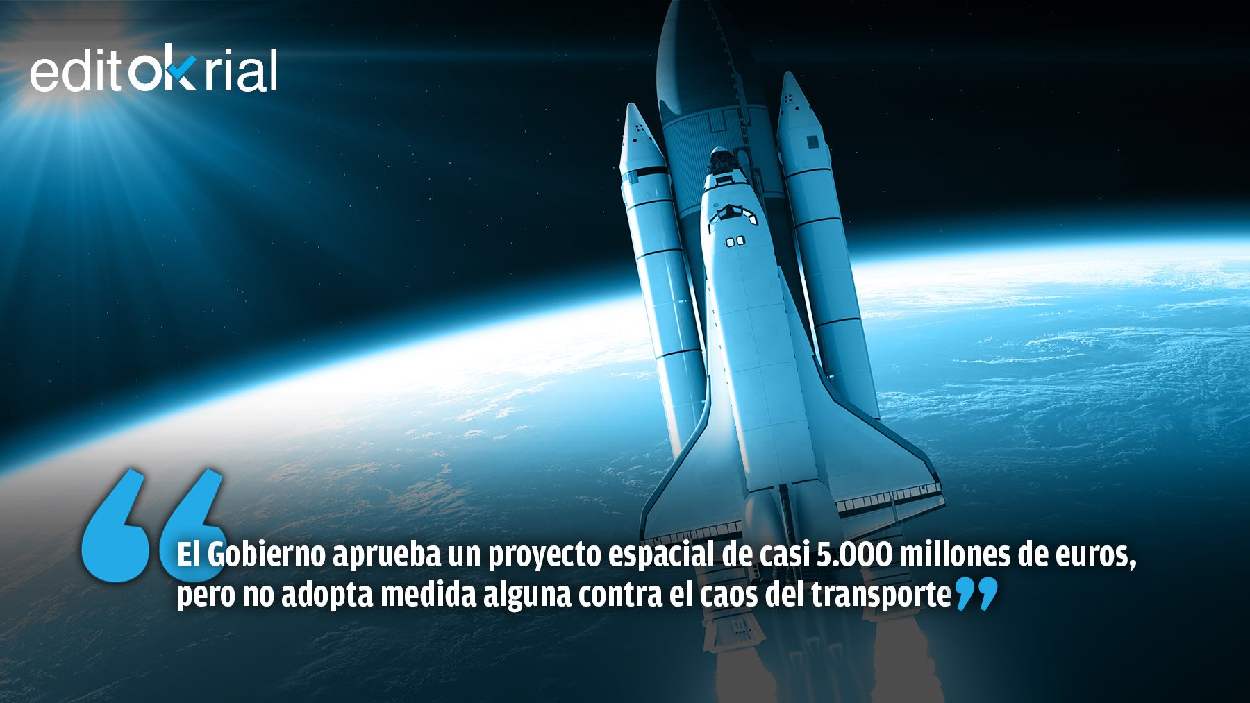 Debe de ser un ejercicio de evasión para liberarse del ruido de la calle. O despegarse de la realidad mirando a las estrellas. O será que este Ejecutivo anda tan perdido que ha decidido elevarse por encima de los problemas domésticos. En plena huelga del transporte, el Consejo de Ministros ha aprobado el Proyecto Estratégico para la Recuperación y Transformación Económica (PERTE) Aeroespacial, con el que pretende impulsar la innovación en el ámbito aeroespacial. En total serán 4.533 millones de euros entre 2021 y 2025, con una contribución del sector público de alrededor de 2.193 millones de euros y una inversión privada de cerca de 2.340 millones.
