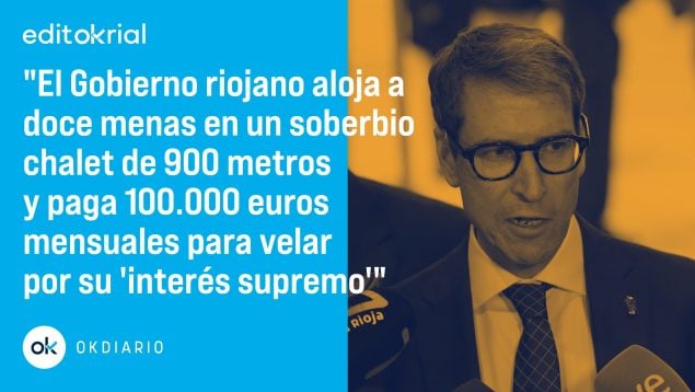 Es cierto que el Gobierno de Capellán tiene la obligación de proteger a los menas, así como velar por su «interés supremo», pero el concepto de «interés supremo» con el que se justifica el Ejecutivo regional no significa que lo que tenga que ser supremo es el chalet. Eso es lo que parece no entender Capellán, porque un gasto mensual por mena de 8.333 euros al mes parece excesivo o, al menos, se aparta mucho del gasto mensual por persona que, ya no sólo en La Rioja, sino en cualquier otra parte de España, se necesita para mantener un nivel de vida razonable.