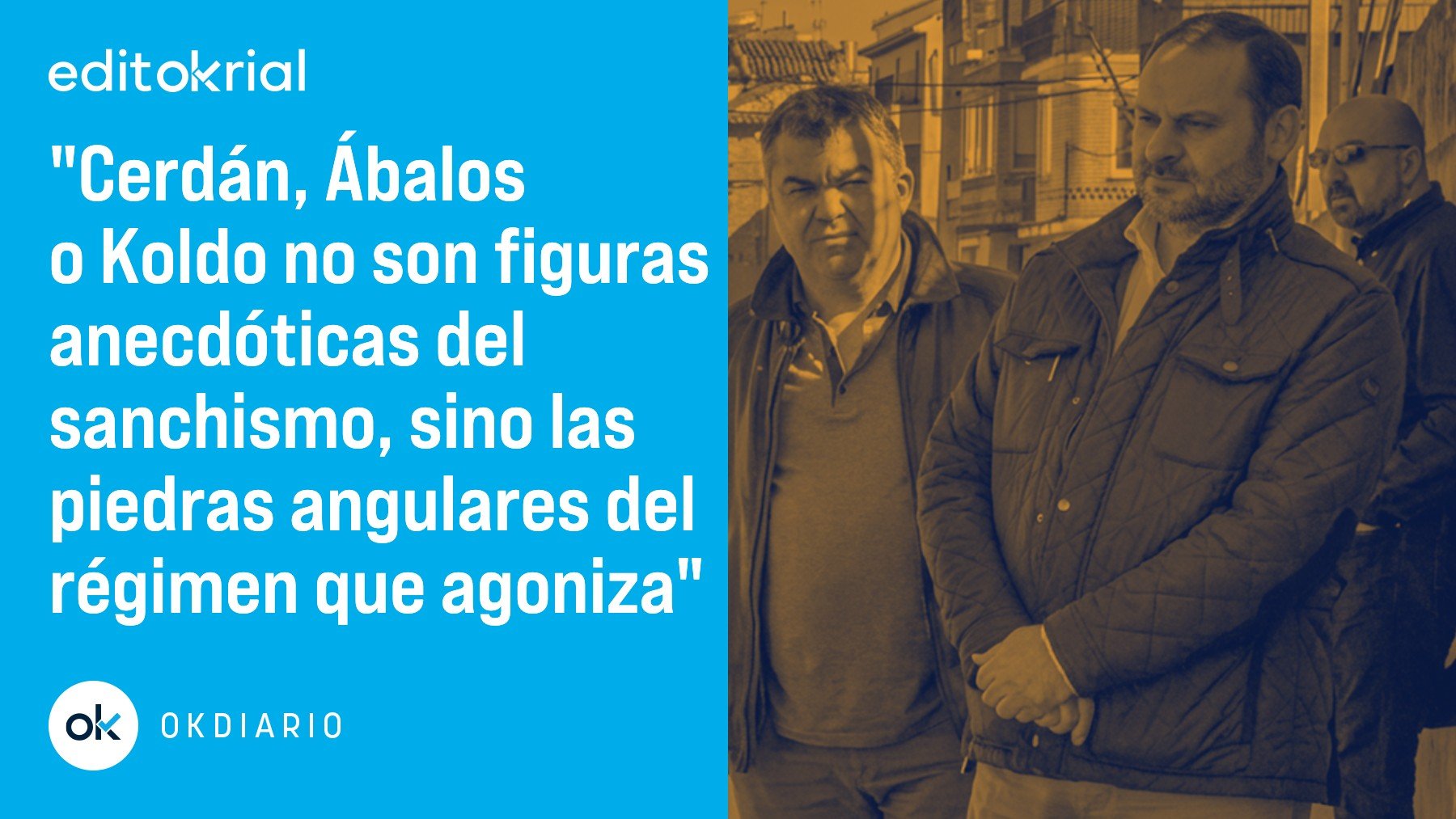 La entrada en prisión de José Luis Ábalos y Koldo García -sumada a la de en su día Santos Cerdán- constituye el relato gráfico más cabal del sanchismo, el de la descomposición de un régimen que agoniza. Prácticamente todos los que acompañaron a Pedro Sánchez en su travesía hacia la secretaria general del PSOE han pasado por la cárcel o están ahora en prisión, mientras sobre el entorno familiar del presidente se cierne un negro horizonte penal. Para que luego Pedro Sánchez diga que su Gobierno es el más limpio, con el de Zapatero, de la democracia. Hay que tener muy poca vergüenza para, en medio de un caudal insoportable de corrupción, presumir de limpieza democrática.