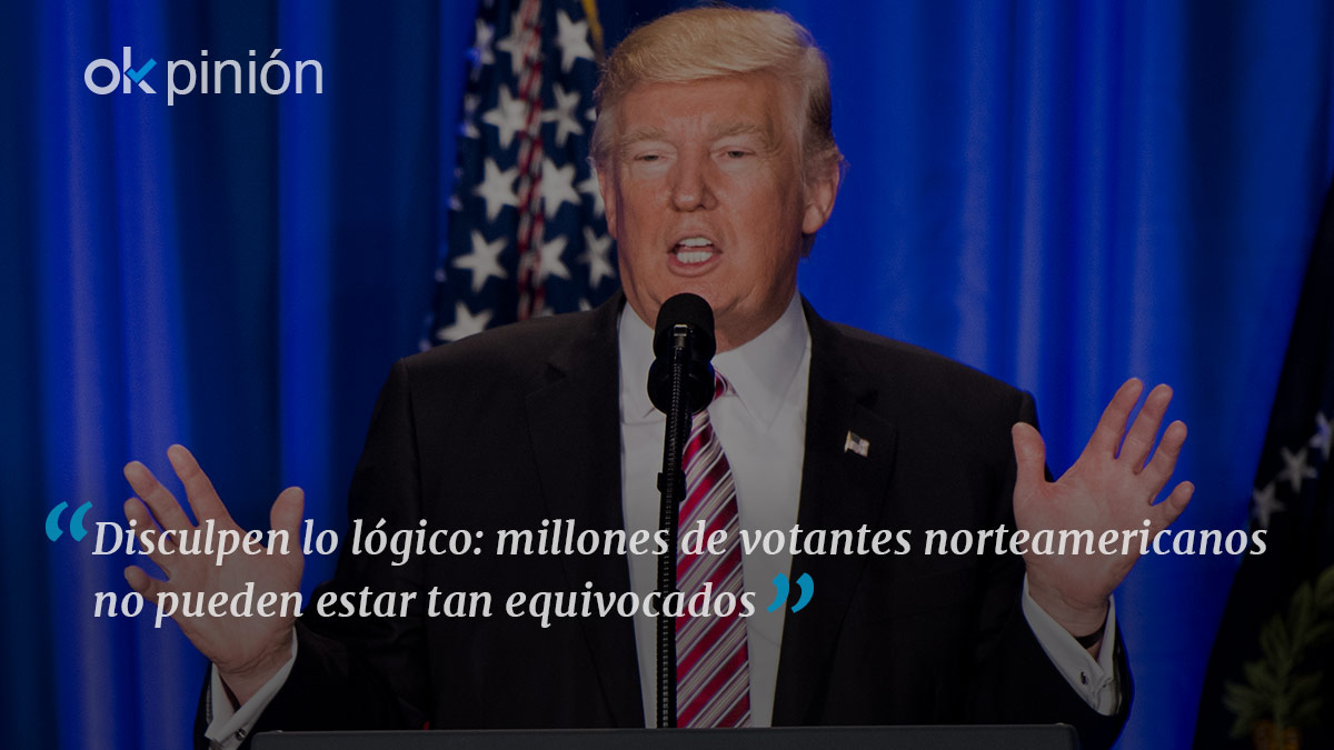 Le han votado por irradiar poder y fuerza, frente a debilidad y cesión, por decir que como presidente volverá a hacer respetar al país ante China y Rusia, y que acabará con el Estado Islámico. Disculpen lo lógico: millones de votantes norteamericanos no pueden estar tan equivocados.