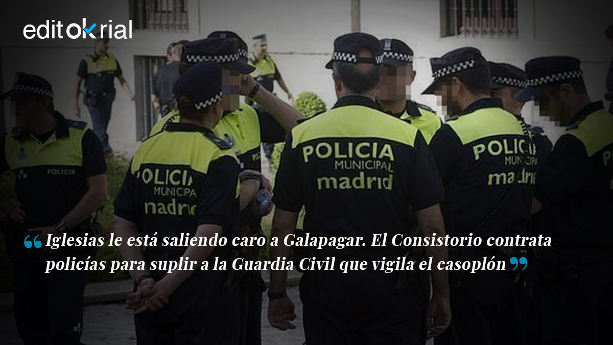 Es poco probable que a Pablo Iglesias, al menos a tenor de las incomodidades que está causando a todos los galapagueños, le honren con la distinción de vecino predilecto de Galapagar. El dirigente de Podemos le está saliendo caro al Ayuntamiento de la localidad madrileña y, por lo tanto, a los más de 32.000 vecinos. El Consistorio de Daniel Pérez se ha visto obligado a contratar nueve agentes de Policía Municipal –que cobrarán entre 31.000 y 33.200 euros– para reforzar los servicios de seguridad ciudadana, ya que la Guardia Civil ha tenido que emplear sus recursos para que agentes del Cuerpo custodien durante las 24 horas del día el casoplón de lujo del dirigente de Podemos y su pareja, Irene Montero.