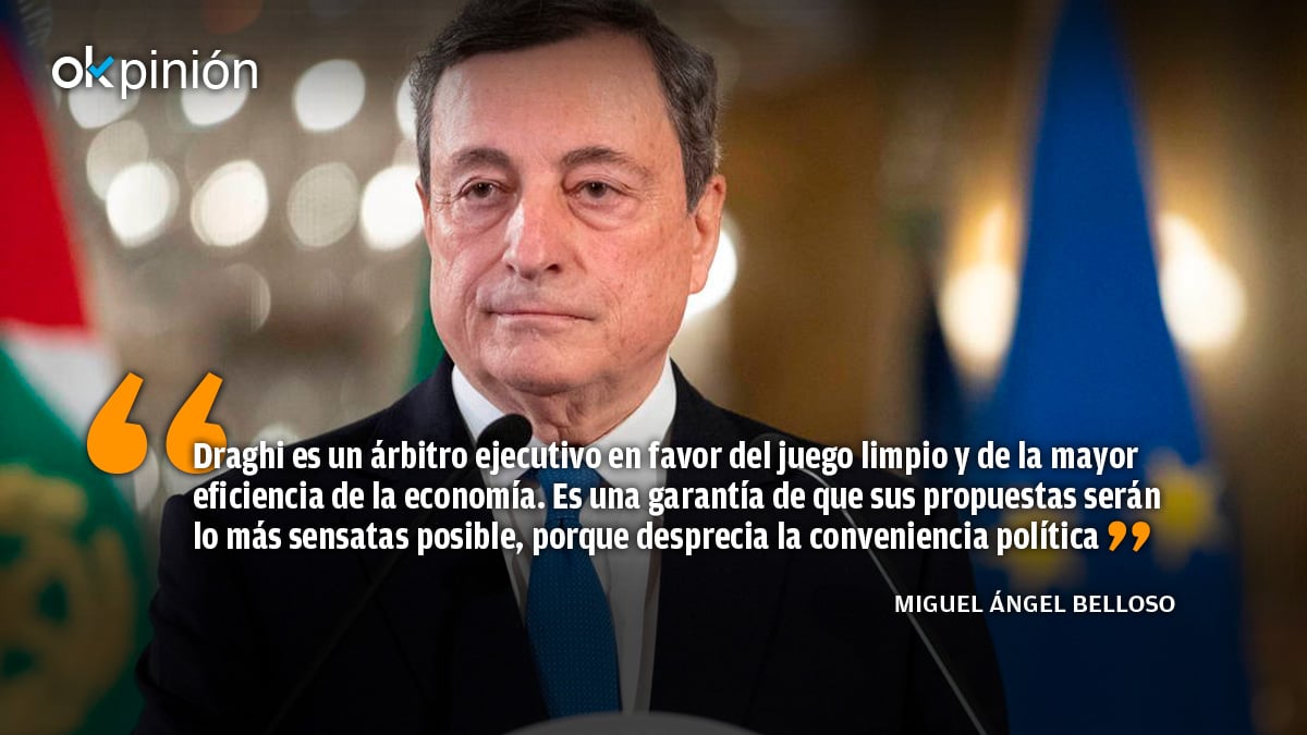 Draghi es un árbitro ejecutivo en favor del juego limpio y de la mayor eficiencia de la economía. Es una garantía de que sus propuestas serán lo más sensatas posible, porque desprecia la conveniencia política. Sánchez sólo aspira a ser el jefe del club, el capo de la banda, y semeja estar muy dispuesto a practicar el clientelismo en vena, ése que valide, perpetúe y confirme su poder incontestable.