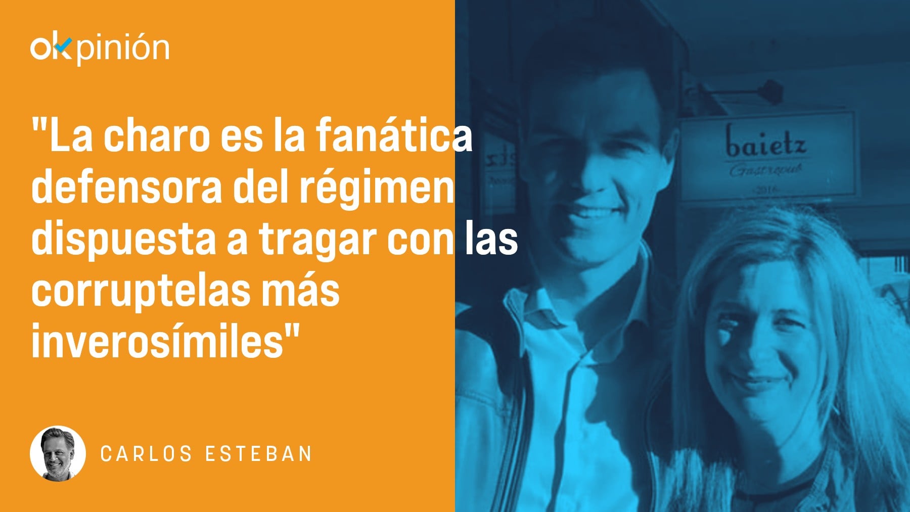 La charo es la fanática defensora del régimen, una especie de Joven Guardia Roja dispuesta a tragar las versiones más inverosímiles con las que el poder trata -cada vez con menor convicción- sus descarados desmanes y corruptelas. La charo vive de consignas facilonas y le mueve un resentimiento disfrazado de una empatía empalagosa y visual. Como una forofa futbolera, va a defender los colores de su equipo -en PSOE en nuestro país, aunque el personaje es ubicuo en todo Occidente- contra viento y marea, contra cualquier evidencia, contra el peor latrocinio.