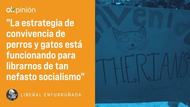 Ahora que la prensa ha puesto de moda a los therians, que son esas personas aburridas de la vida que se identifican con un animal y se disfrazan como si lo fueran, podríamos encontrar un símil en la política actual donde encontramos una estrategia electoral entre el PP y Vox que podríamos llamar «convivencia de perros y gatos», o, para ser más exactos, «simulacro therian de perros y gatos».