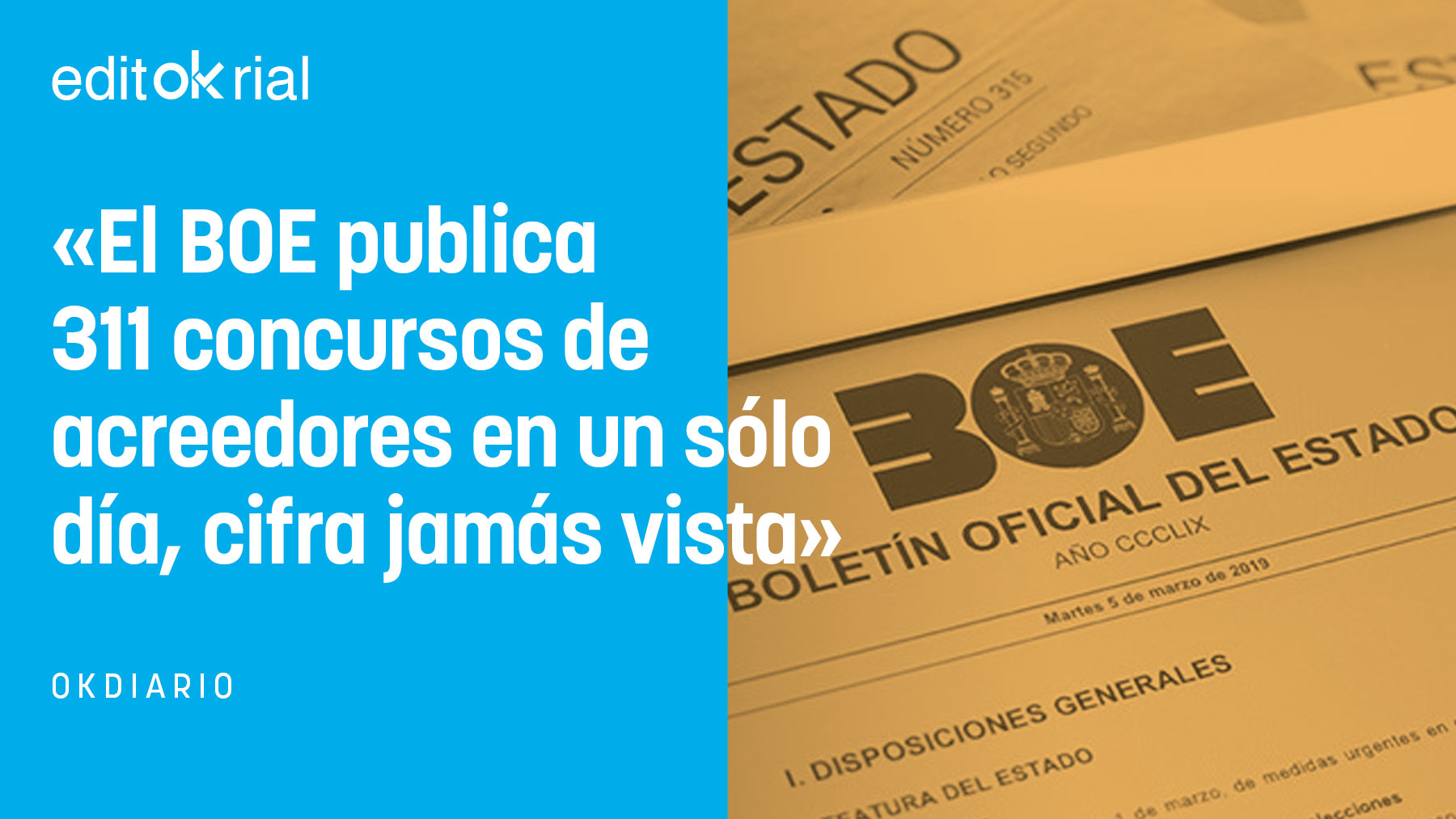 Un dato aterrador: el martes se publicaron en el Boletín Oficial del Estado 311 concursos de acreedores, la mayor cifra notificada en un solo día desde que hay registros. Ni siquiera durante los peores años de la pasada crisis económica y financiera, entre 2008 y 2013, se notificó en un solo día tal cantidad de concursos. No sólo son empresas (restaurantes, pequeñas industrias, inmobiliarias), sino que también hay decenas de personas físicas. El alza de los precios y la subida de los tipos de interés han acabado con la escasa resistencia que les quedaba. Insistimos, no sólo son sociedades que no pueden mantener la actividad, sino familias que no pueden hacer frente a sus deudas. Estamos ante un termómetro, el de los concursos de acreedores, que no suele ocupar grandes titulares, pero que sirve para medir la realidad económica de España. Y lo que revela es que la situación se agrava ante la incapacidad de un Gobierno que se dedica, de cuando en cuando, a poner parches y a sacar pecho. Esta es la España real y no la de celofán que nos vende Pedro Sánchez