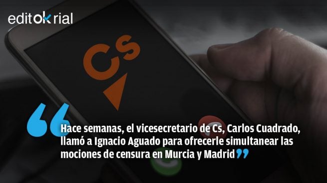 El esquema de mociones de censura diseñado por Carlos Cuadrado, número 2 de Ciudadanos, empezaba en Murcia, pero era extensible al resto de feudos gobernados en alianza por el Partido Popular y Ciudadanos. Por supuesto, el PSOE -La Moncloa, concretamente- estaba al tanto. Los socialistas, conscientes del descontento en Murcia de los diputados naranjas, lanzaron el guiño a Ciudadanos que, seducido por una oferta que iba más allá de la Comunidad murciana, empezó a soñar con una estrategia de ancho alcance que les permitiera recomponer su maltrecha situación. Hace casi un mes, Cuadrado llamó a Ignacio Aguado, a quien le ofreció simultanear el plan de censura contra el presidente de Murcia, López Miras, con el derribo político en Madrid de Díaz Ayuso. Ahora, Aguado se pasea por las televisiones acusando a la presidenta madrileña de traición, pero no podrá negar que sabía lo que se estaba tramando, si bien expresó su temor al fracaso de la estrategia. De hecho, las reticencias de Aguado propiciaron que Murcia se adelantase y lanzase la moción de censura sin esperar al resto de territorios.