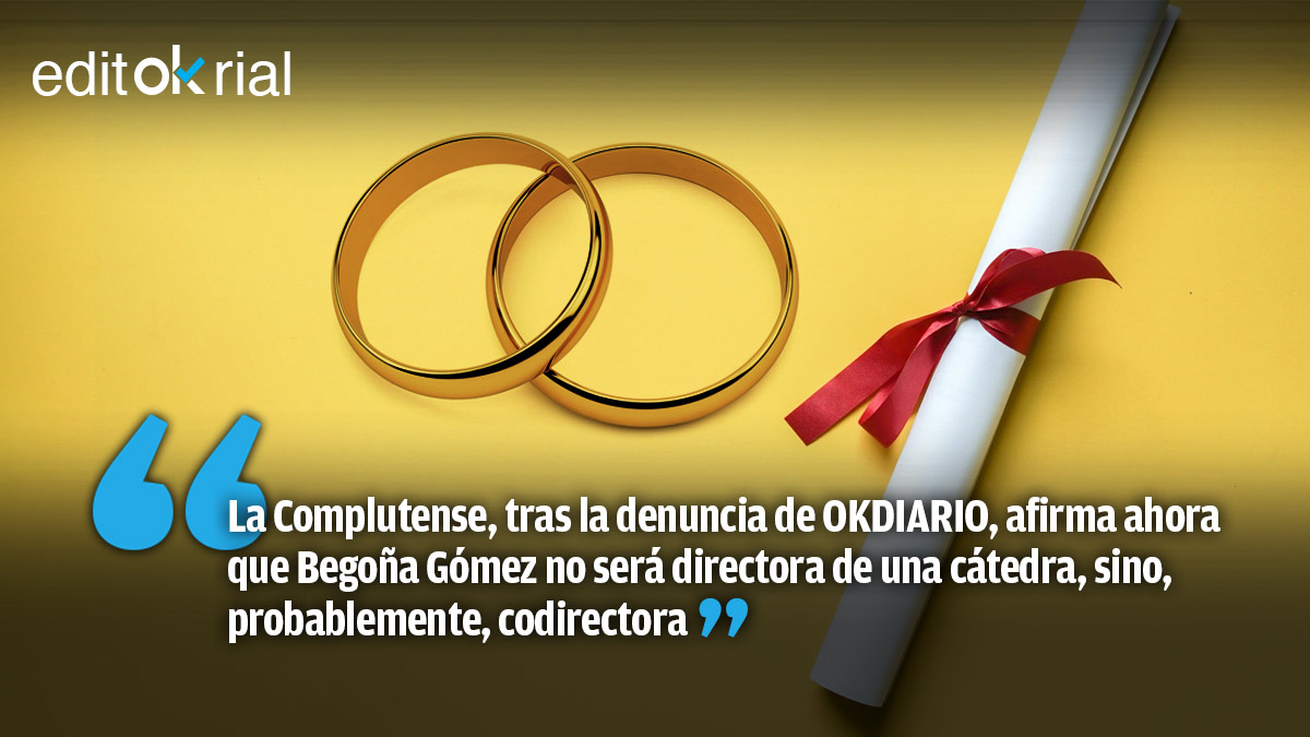 OKDIARIO desveló que Begoña Gómez, esposa de Pedro Sánchez, sería la directora de una cátedra extraordinaria de la Universidad Complutense, pese a carecer de cualificación y titulación -algo exigible a los alumnos-. La noticia provocó indignación en amplios sectores académicos, que denunciaron el nepotismo y el trato de favor de la universidad pública. La polvareda desatada ha llevado a la Complutense a modificar su página web. Donde antes daban por hecho que Begoña Gómez era la «directora de la cátedra», ahora se afirma que «es posible que sea la nueva codirectora».