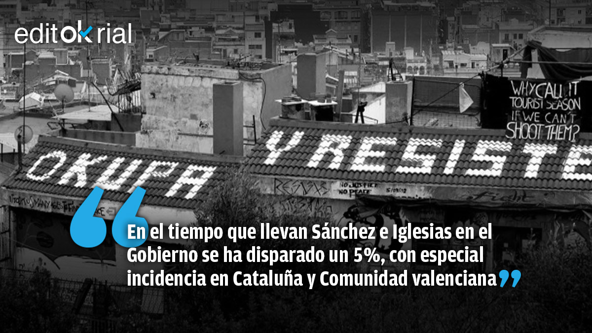El socialcomunismo se empeña en decir que la okupación es un problema artificial, inflado por el centro derecha y algunos medios de comunicación con el objetivo de crear un falso clima de inseguridad. Podemos, a través de Pablo Iglesias, ha llegado a decir que la okupación no es un problema, sino la existencia de fondos buitres que han encarecido el alquiler con el apoyo del PP. Pues bien, si la estadística no engaña -puede estar distorsionada porque son muchas las víctimas de los okupas que no denuncian por miedo a un interminable proceso judicial- la okupación ha crecido en España un 5% desde la llegada del Gobierno socialcomunista.