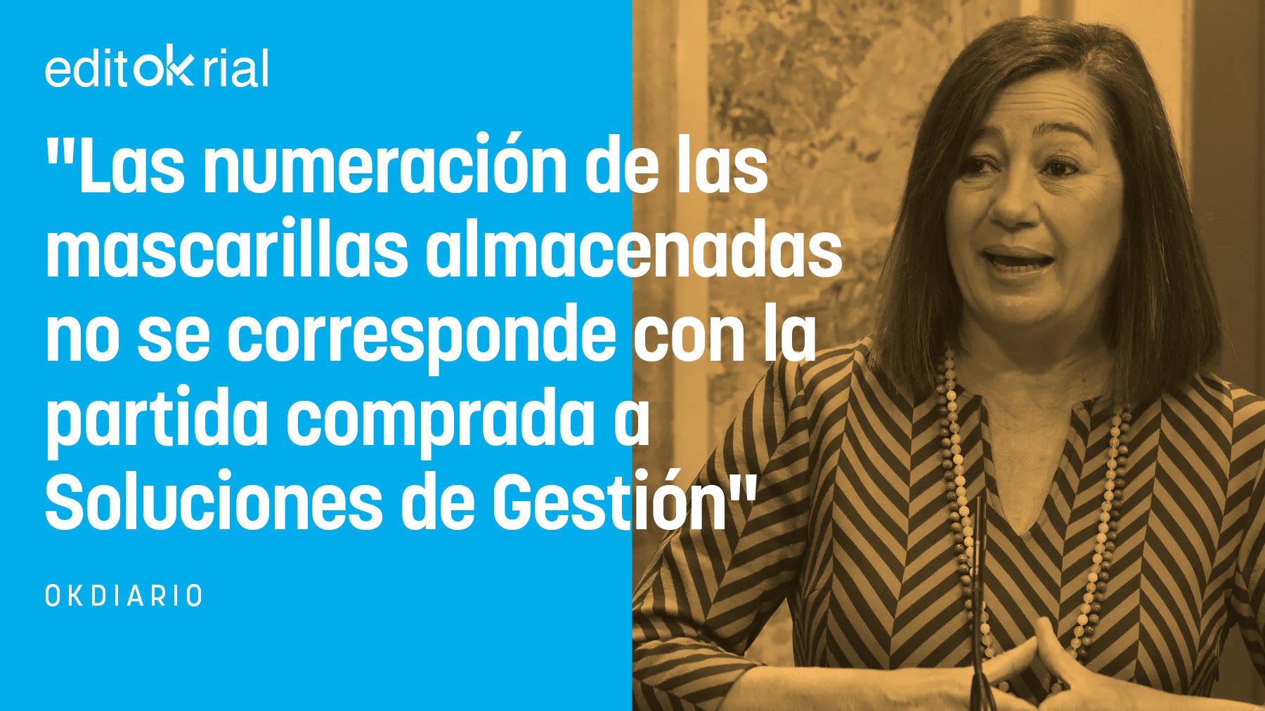 Francina Armengol miente: las mascarillas caducadas almacenadas en una nave industrial por el anterior Gobierno socialcomunista de Baleares para poder reclamar su importe a la empresa no son las que compró a Soluciones de Gestión, la sociedad vinculada a Koldo García, como afirmó el equipo de la ex presidenta de Baleares. Dicho equipo afirmó que fueron guardadas para conservarlas como prueba, pero las etiquetas del cargamento de mascarillas no se corresponde con el adquirido a esa empresa, pues tienen numeración diferente. Tampoco coincide la fecha del envío, pues en las etiquetas de las mascarillas caducadas almacenadas consta el día 9 de abril de 2020, cuando la fecha de envío de las mascarillas adquiridas a la empresa de la trama Koldo es 27 de abril del mismo año. Aquí hay gato encerrado y la pregunta es obvia. ¿Dónde están las mascarillas caducadas de la trama de Koldo que se guardaron como prueba y, ya puestos, de dónde han salido las mascarillas actualmente almacenadas?