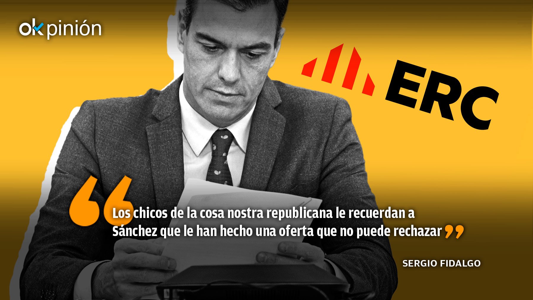 Los chicos de la cosa nostra republicana le recuerdan a Sánchez que le han hecho una oferta que no puede rechazar. Sin ellos y sus socios de Bildu, sin las “fuerzas políticas que aspiran a dejar de pertenecer al Estado español” no hay Falcon. Ni ahora, ni en el futuro. Así que ya puede dejar de comportarse como el dirigente de un partido con una línea política teóricamente propia y aceptar que es el chico de los recados de Junqueras y Otegi. No es una cabeza de caballo en la cama, pero le han amenazado sin dejarle sin el colchón de Rajoy que cambió nada más trasladarse a La Moncloa. Eso, para Sánchez, es peor.