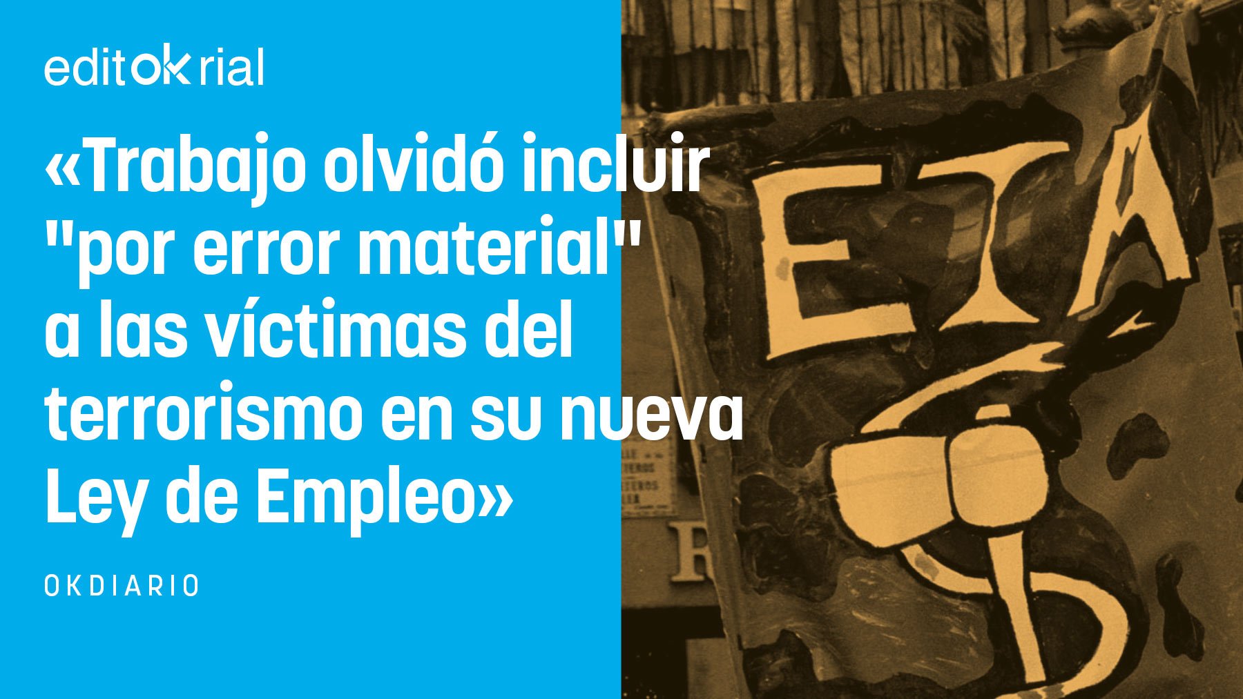 La incompetencia del Gobierno no tiene límites: un día aprueba una ley que es un coladero para que los agresores sexuales vean reducidas sus penas o sean literalmente puestos en libertad y otro se olvida por un «error material» de incluir a las víctimas del terrorismo como colectivo vulnerable en la nueva Ley de Empleo para garantizar su «atención prioritaria» en el Servicio Público de Empleo Estatal (SEPE). La norma, que se encuentra tramitándose actualmente en el Congreso, detalló los colectivos y grupos que podían beneficiarse. Se incluyeron a los migrantes, los beneficiarios de protección internacional, las mujeres víctimas de violencia de género, las personas en situación de exclusión social, las personas que han abandonado los servicios de empleo, las personas mayores de 45 años y quienes pertenezcan al colectivo LGTBI, pero, casualmente, el Ministerio de Trabajo se olvidó de incluir a las víctimas del terrorismo.