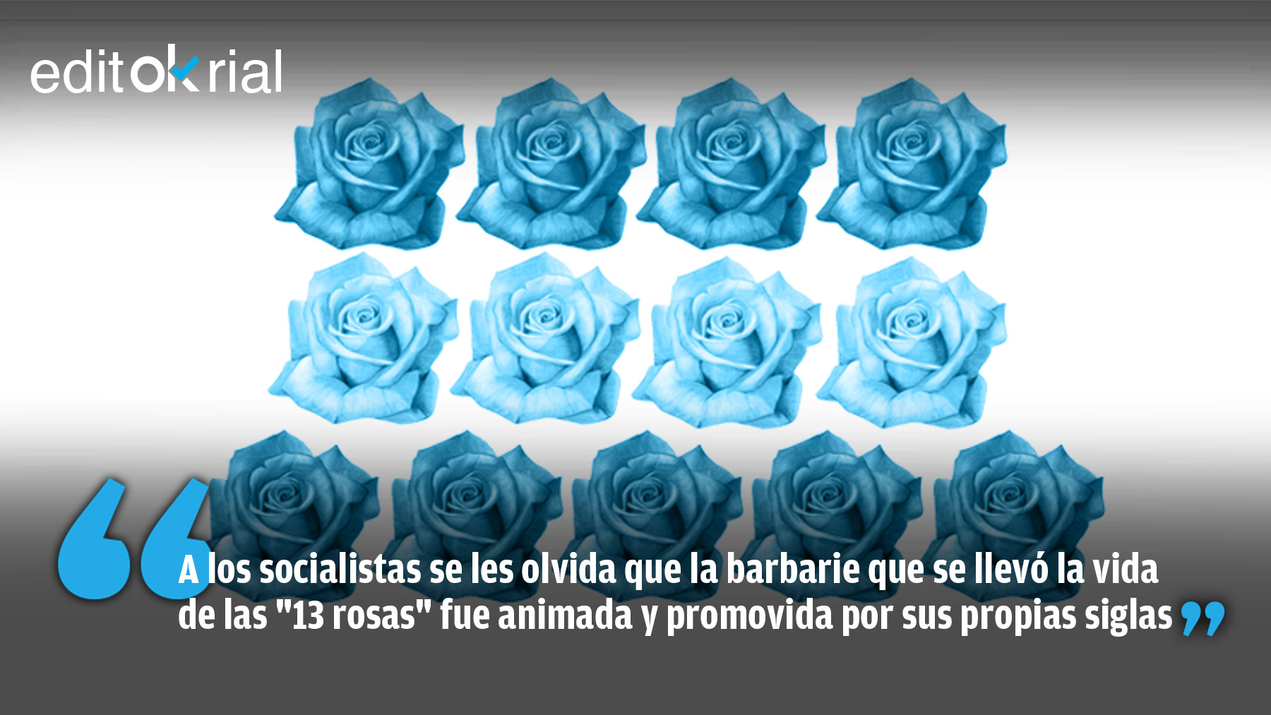 La foto de la portavoz del PSOE en la Asamblea de Madrid, Hana Jalloul, en un acto homenaje a las «13 rosas» en el 82 aniversario de su muerte organizado por el Partido Comunista de Madrid (PCM) en el Cementerio del Este es la foto de familia en la que sólo faltó un recuerdo por el genocida Largo Caballero, el mismo que dijo sin sonrojarse que «el comunismo es la evolución natural del socialismo, su última y definitiva etapa… Si ganan las derechas, tendremos que ir a la guerra civil». A los socialistas y comunistas se les olvida que la barbarie que se llevó la vida de las «13 rosas», las jóvenes fusiladas hace 82 años en Madrid, fue animada y promovida entre otros por un PSOE que admitía sin tapujos que la democracia era una etapa que debía ser superada para alcanzar la dictadura del proletariado. Por eso resulta tan grotesca como esclarecedora la imagen de Jalloul posando al lado de comunistas con el puño en alto, congelados en el tiempo luchando contra las oscuras fuerzas del fascismo, el clero y la monarquía. Todos sonrientes… escondiendo los piolets.