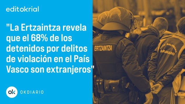 Según datos de la Ertzaintza, el 68% de los detenidos por violación en el País Vasco en 2025 —anteriormente los datos ofrecidos no eran de años totales— son extranjeros, con la salvedad de que la población extranjera en este territorio es de las más bajas de España, situándose en torno al 10% de la población total. El mero hecho de que la Policía vasca decidiera hacer públicos los datos ya fue cuestionado por la izquierda con el peregrino argumento de que estigmatizaban y tenían un poso racista.