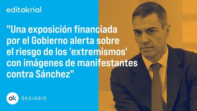 O sea, que en realidad lo que se pretende es trasladar la idea de que quienes expresan sus críticas al jefe del Ejecutivo son «extremistas» que constituyen una amenaza para la democracia. A la pregunta «¿Cómo podemos detectar las narrativas extremistas?», la respuesta se ofrece de forma gráfica: una serie de imágenes con políticos de la oposición, periodistas y manifestantes frente a la sede socialista. La exposición es un acto propagandístico de la cruz a la raya en el que Pedro Sánchez aparece convertido en víctima del odio de la extrema derecha.
