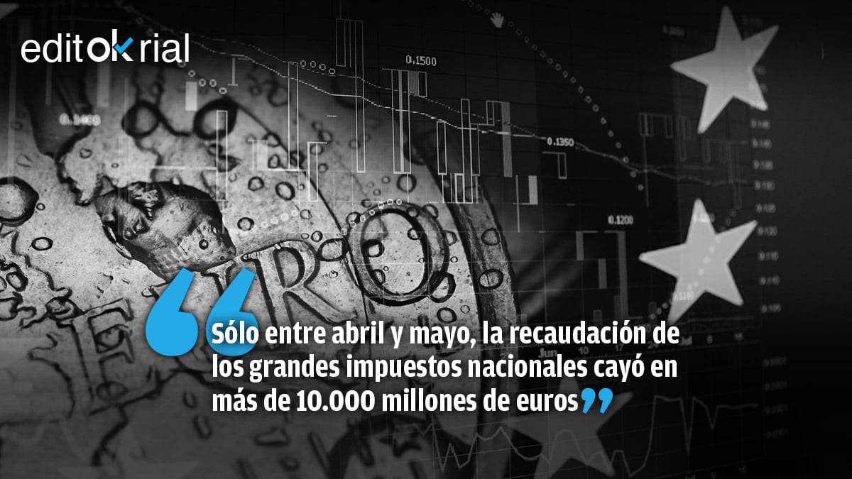 Pedro Sánchez ha vuelto de Bruselas eufórico, aunque las ayudas vengan con todo un manual de condiciones. Los 72.000 millones logrados tras durísimas negociaciones son un balón de oxígeno para una economía maltrecha como la española. Ya venía renqueando antes de las crisis sanitaria, pero la pandemia le ha dado la puntilla. Lo malo es que esos 72.000 millones de euros se antojan pocos para el destrozo de nuestras cuentas públicas. Los informes de Hacienda a los que ha tenido acceso OKDIARIO admiten ya el fuerte impacto de la crisis del coronavirus en la recaudación de los grandes impuestos nacionales: los ingresos por el IRPF, Sociedades, IVA e Impuestos Especiales se han hundido un 30%.