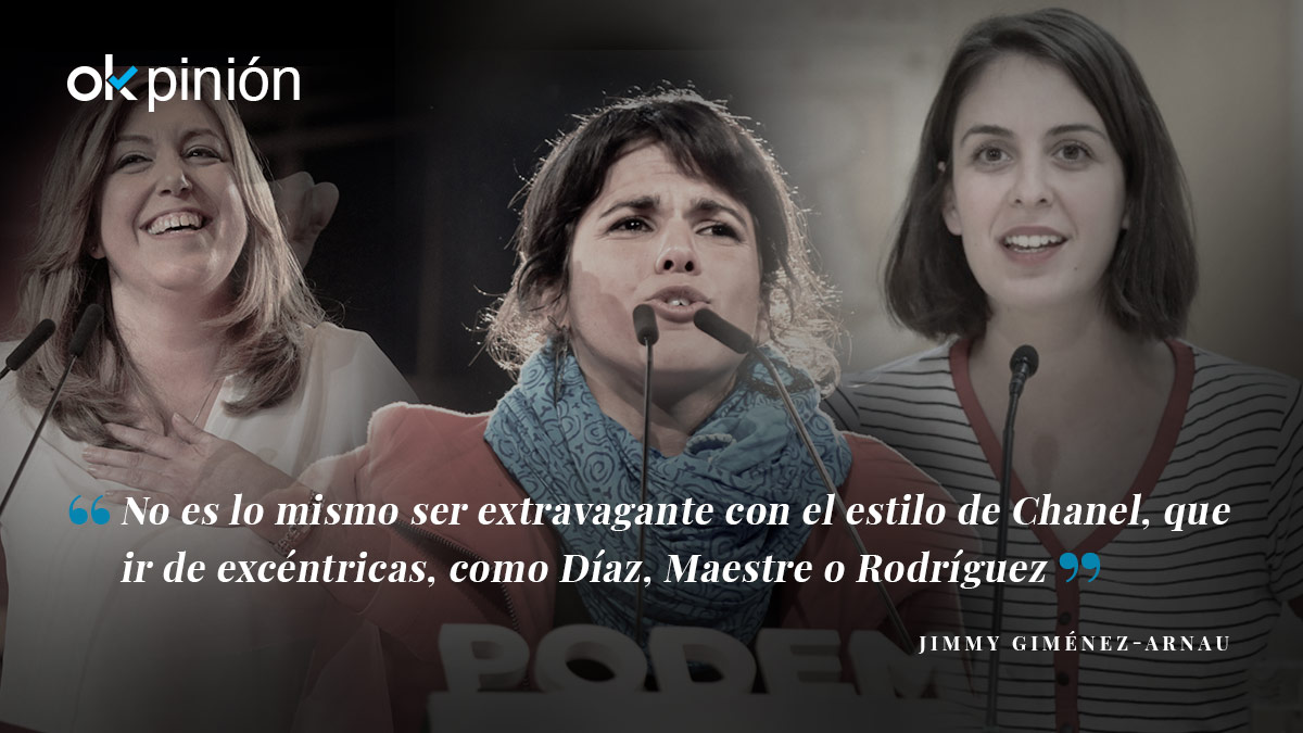 No es lo mismo ser extravagante con el estilo de Coco Chanel, que ir de excéntricas, como Susana Díaz, Rita Maestre o Teresa Rodríguez, tres mujeres a las que el mal de la endiosada mediocridad las tiene sometidas. El siglo XX nos dejó los aromas de Chanel, una de las personas más influyentes de su época por haber revolucionado todas las costumbres, mientras que el siglo XXI apenas ofrece las pataletas de unas revolucionarias de carcajada, señoras vacías de talento y repletas de rencor. Un odio irracional contra VOX, las ha reunido. Hagámosle un traje prêt-à-porter a cada una.