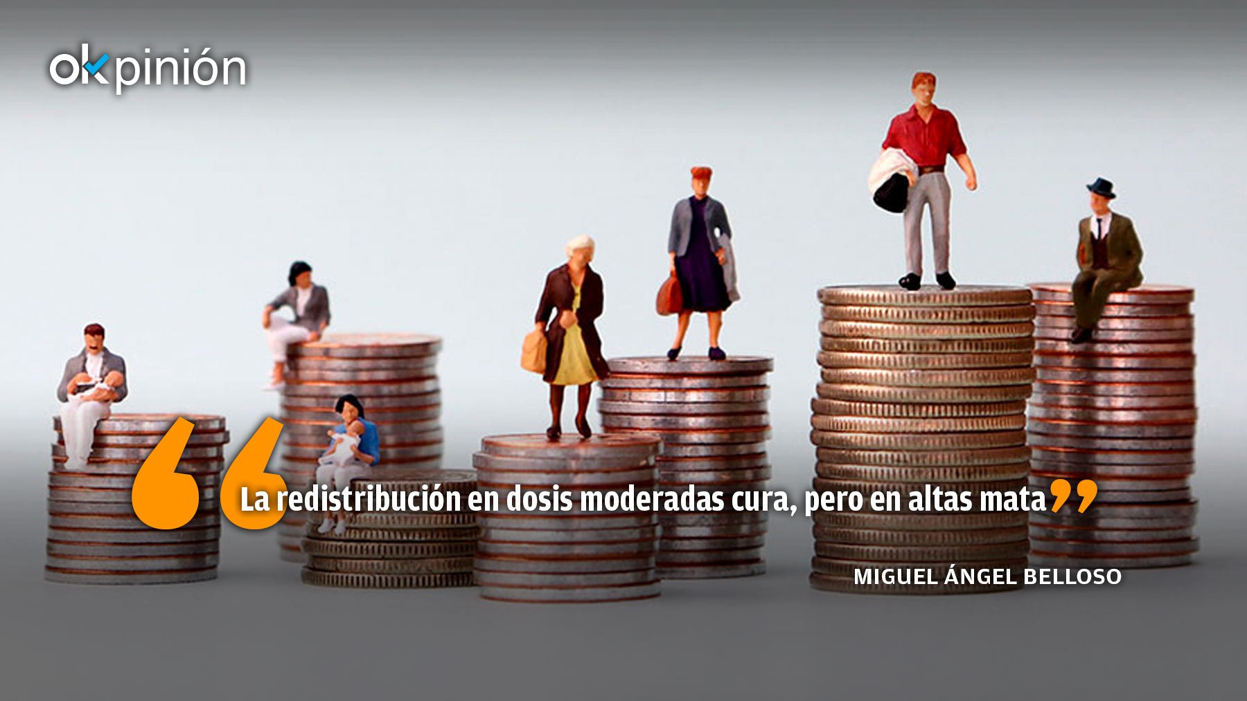 Lo que cada uno ganamos es producto del estudio y del esfuerzo, aunque también de otras circunstancias contra las que no se puede luchar, como el origen socioeconómico, el lugar de nacimiento, la raza y hasta el género. Estas últimas condiciones están por desgracia fuera de nuestro control y los remedios que a veces se plantean a fin de paliarlas son peligrosos y desaconsejables. Estos suelen consistir en una política agresiva de redistribución fiscal. En el aumento masivo de los impuestos.