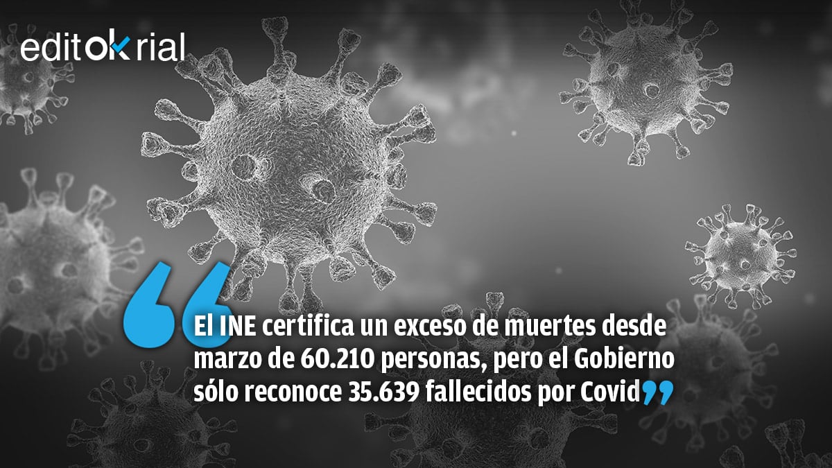 Las cifras del Instituto Nacional de Estadística son estremecedoras: 60.210 muertos desde marzo más que el año pasado, lo que significa que el Gobierno socialcomunista se ha «olvidado» de contabilizar 24.571 fallecidos durante la pandemia. Sólo reconoce 35.639. No cabe mayor ignominia que borrar de las estadísticas a 24.571 personas. El uso partidista de la tragedia sanitaria que está perpetrando el Gobierno socialcomunista no tiene precedentes. España es el país del mundo con una mayor desviación estadística entre el número real de muertos y los reconocidos oficialmente, una diferencia atroz, sobrecogedora. ¿Qué más necesita Pedro Sánchez para actualizar los datos, a qué espera para reconocer a los muertos que tiene intencionadamente perdidos? Es una infamia y un desprecio a los familiares de esas 24.571 personas que no aparecen por ninguna parte.