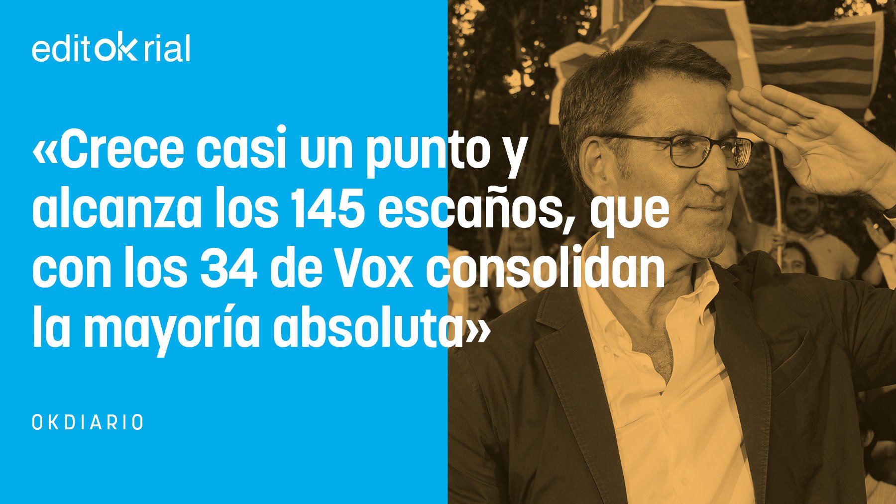 El PP de Feijóo suma más que Pedro Sánchez y Yolanda Díaz juntos, que no pasan de los 136 diputados. El porcentaje de votos de Feijóo es el más alto desde finales de mayo, si bien la pérdida de apoyos de Vox hace que el bloque de derechas se encuentre en escaños lejos de su umbral más alto alcanzado entonces (188). Son 9 asientos menos, que tienen que ver con la recuperación que en el bloque de izquierdas ha registrado el PSOE de Sánchez en el último mes.