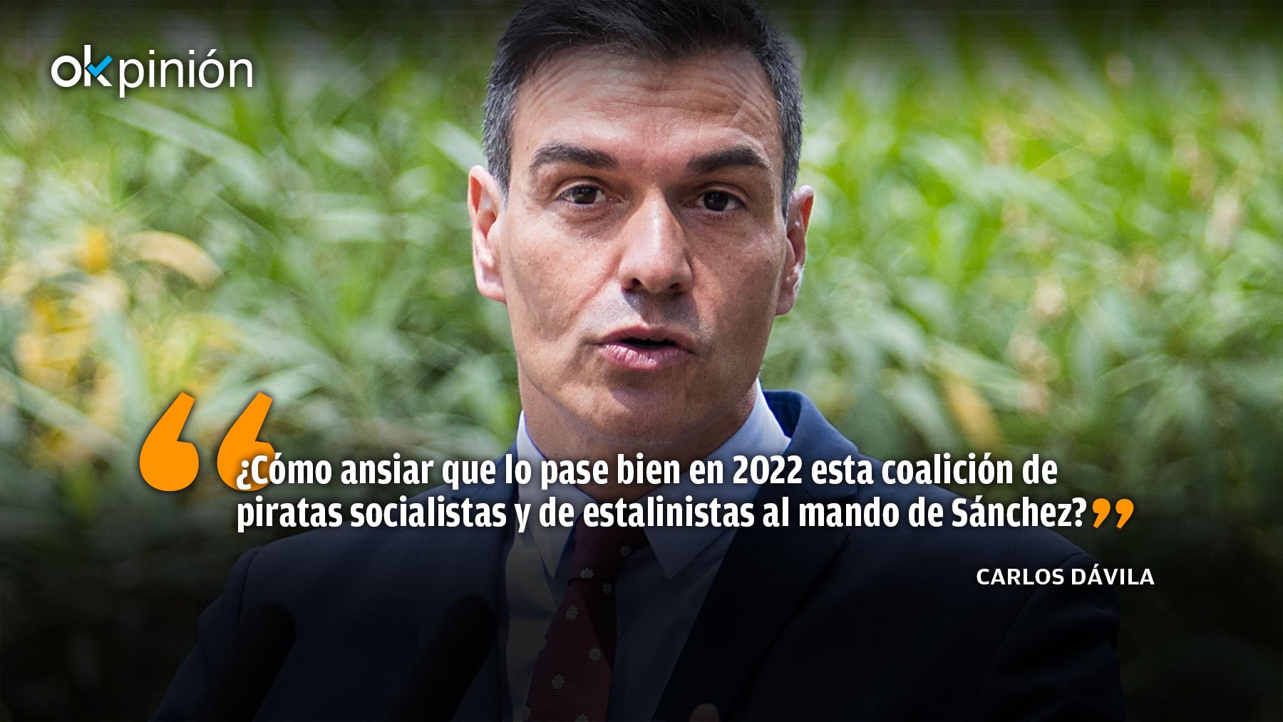 En estas circunstancias, desear que ustedes lo pasen bien en 2022 es únicamente una ilusión que este cronista no le ofrece sin embargo a “casi” todo el mundo. No a todos, desde luego. ¿Cómo ansiárselo a esta coalición de piratas socialistas y de estalinistas al mando de Sánchez? ¿Cómo pedir parabienes para los Iglesias, Diaz, Calviño, Monedero, Monteros y demás cuadrilla? Conmigo no va esa filantropía. El anhelo de este cronista es otro: que en en este año peor que he cogido de prestado les vayan mal, requetemal, las cosas porque eso será señal inequívoca de que a España le empieza a ir bien, que esta formidable pesadilla que la Providencia está tolerando para nuestro país, está a punto de claudicar. Feliz Año para todos ustedes, en especial para los colegas y la multitud de lectores de este periódico. Para todos los españoles decentes. Para los mencionados, en una relación que se ha quedado cortísima, no hay arrepentimiento: ¡Feliz Año Peor!