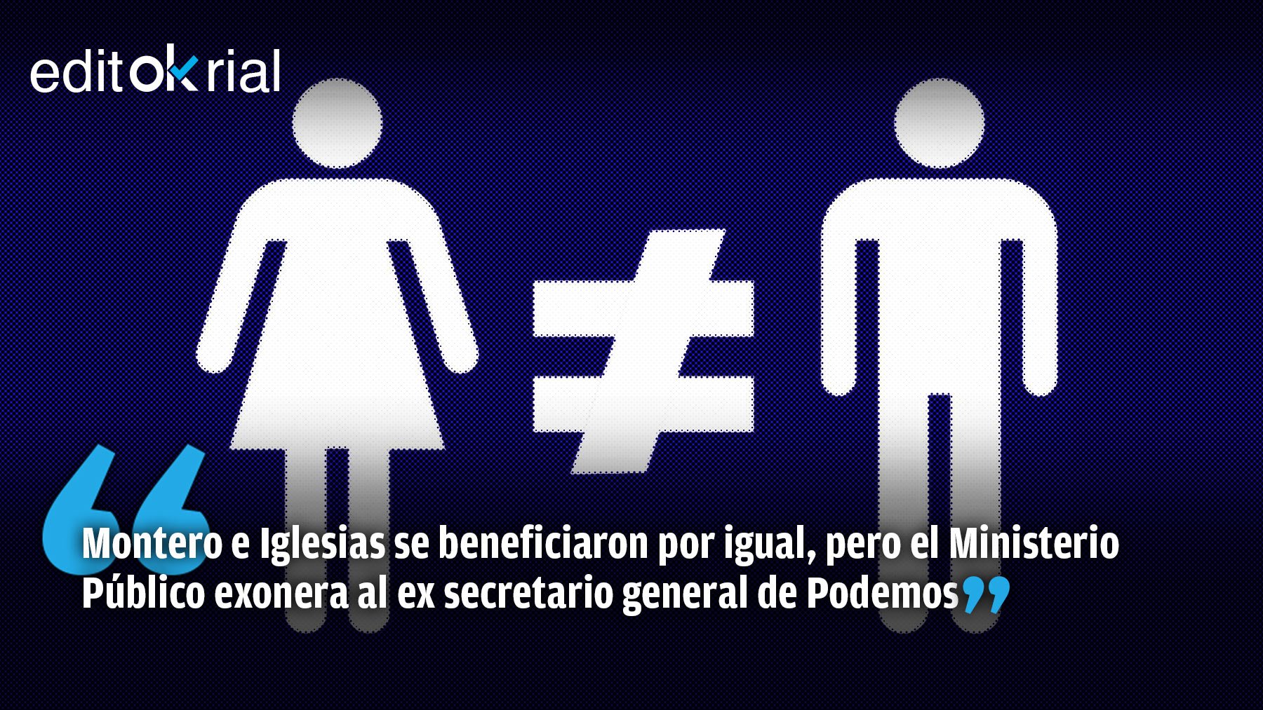 La Fiscalía de Pedro Sánchez ha rozado el rizo del machismo más recalcitrante para tratar de salvar a Pablo Iglesias del denominado ‘caso niñera’-la presunta utilización de una empleada de Podemos, después cargo público del Ministerio de Igualdad, para prestar servicios personales como cuidadora de la hija de Irene Montero y el ex secretario general de la formación morada. La investigación, en pura lógica, debería dirigirse contra ambos progenitores, dado que los dos se han beneficiado del trabajo doméstico de la que fuera ex diputada de Podemos Teresa Arévalo y hoy jefa de gabinete adjunta de la ministra de Igualdad. Pues bien, el Ministerio Público sostiene que «su condición de padre de la menor Aitana no le puede atribuir indicios de criminalidad». Caramba con la Fiscalía: la pareja se beneficia por igual del trabajo prestado por la empleada, pero su condición de padre de la pequeña salva a Pablo Iglesias en virtud de una reaccionaria interpretación contraria a las más elementales normas de la igualdad de género. Vamos a ver: si no estuviéramos hablando de Irene Montero y Pablo Iglesias y un fiscal aplicara el mismo criterio en un caso similar, el ultrafeminismo patrio -esta vez con razón- se habría lanzado con furor desbordado contra el representante del Ministerio Público. Y es que la Fiscalía salva a Pablo Iglesias al considerar que dada su condición de padre no se le pueden atribuir indicios de criminalidad. O se explica la Fiscalía o estamos ante una discriminación de género de libro.