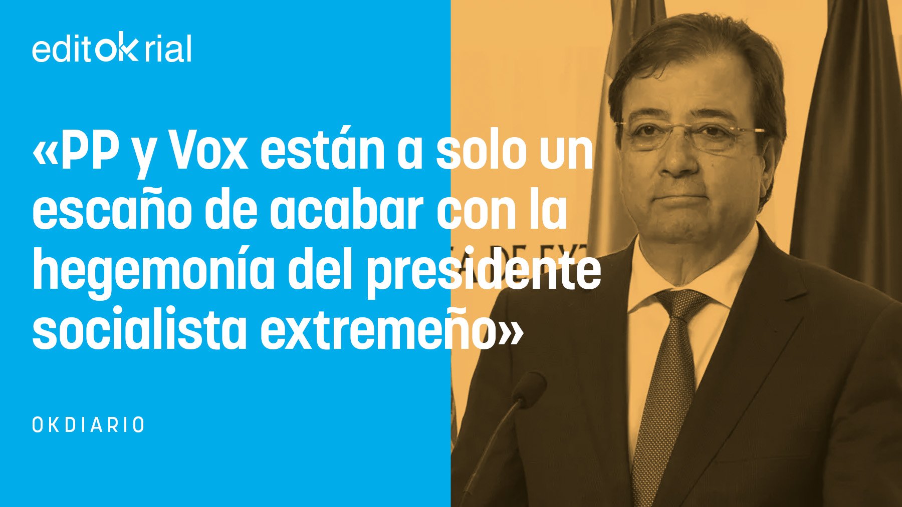 Hace unos meses, pocos dudaban de que el socialista Guillermo Fernández Vara seguiría al frente de la Junta de Extremadura, pero hoy, las cosas han cambiado y la posibilidad de que la suma de PP y Vox acabe con el barón socialista es real. Según la última encuesta de Data10 para OKDIARIO, el PSOE obtendría 29 escaños -cinco menos que en 2019- y el PP lograría pasar de 20 a 27, mientras que Vox irrumpiría en el Parlamento extremeño con cinco parlamentarios, uno más que Podemos. La derecha sube más de 14 puntos y 12 escaños y el bloque de la izquierda se deja cinco puntos y cinco escaños, lo que estrecha al máximo la distancia entre ambos.